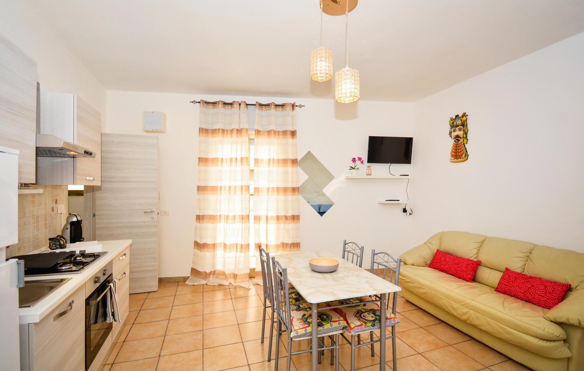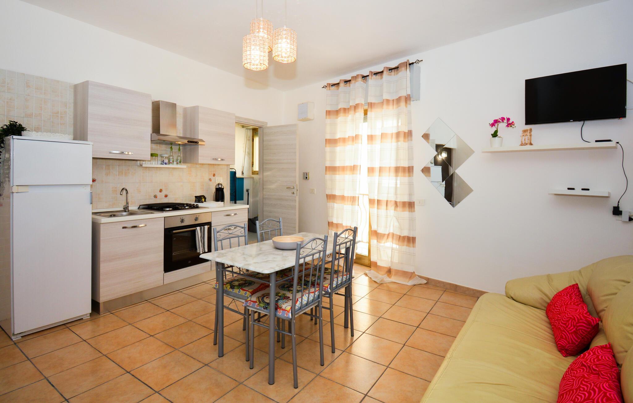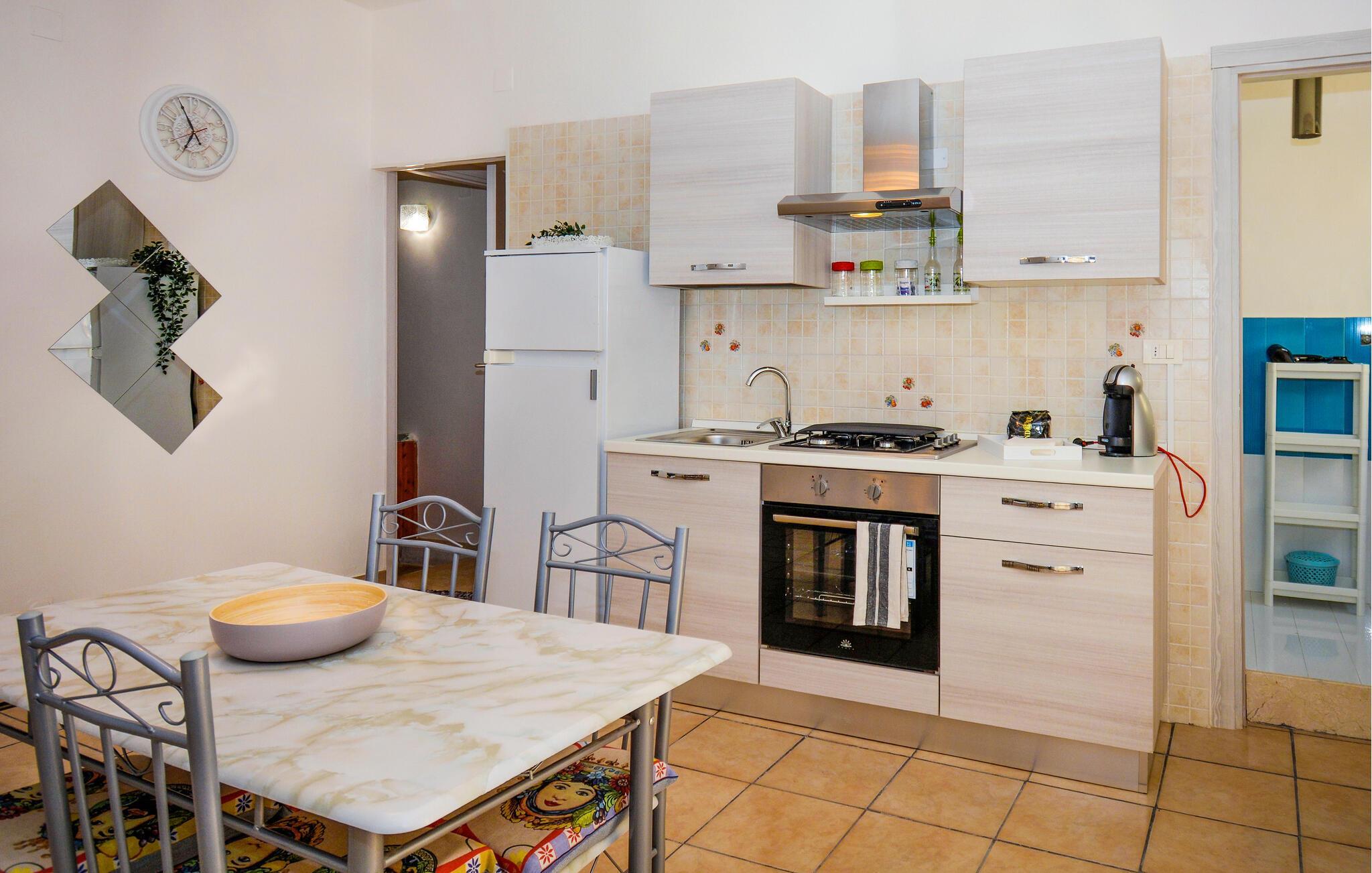 Dieses gepflegte Studio bietet Ihnen ein behagliches Refugium im historischen Bergdorf Ragusa – ideal für eine abwechslungsreiche Auszeit auf Sizilien. Zaubern Sie köstliche Arancini in der modernen, offenen Küche und genießen Sie Ihre Mahlzeiten am einladenden Esstisch. Nach einem erlebnisreichen Tag können Sie auf dem Sofa einen Film streamen oder bei einer unterhaltsamen Lektüre von Andrea Camilleri entspannen.