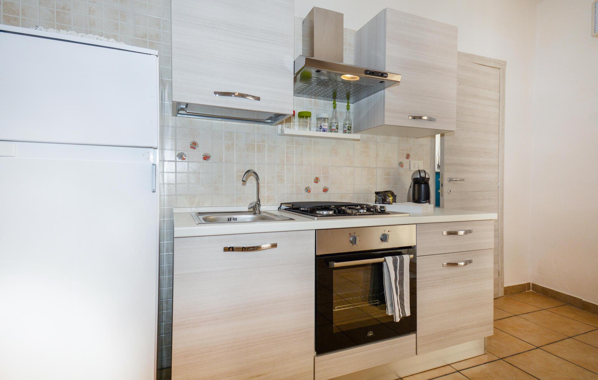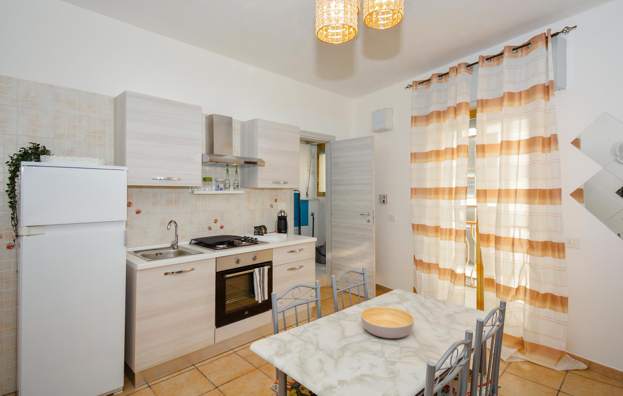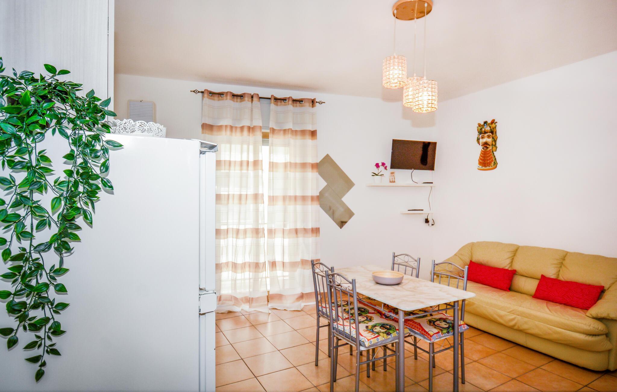 Dieses gepflegte Studio bietet Ihnen ein behagliches Refugium im historischen Bergdorf Ragusa – ideal für eine abwechslungsreiche Auszeit auf Sizilien. Zaubern Sie köstliche Arancini in der modernen, offenen Küche und genießen Sie Ihre Mahlzeiten am einladenden Esstisch. Nach einem erlebnisreichen Tag können Sie auf dem Sofa einen Film streamen oder bei einer unterhaltsamen Lektüre von Andrea Camilleri entspannen.