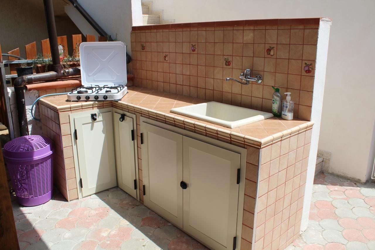 Im Erdgeschoss, zusätzlich zu den privaten Parkplatz und eine Außendusche, gibt es einen überdachten Entspannungsbereich mit einem großen Pavillon, ausgestattet mit einer Küche und gemauerten Grill, Tisch, Stühle und Schaukelstuhl, wo Sie sich entspannen können, kochen, oder für ein Barbecue im Freien. -