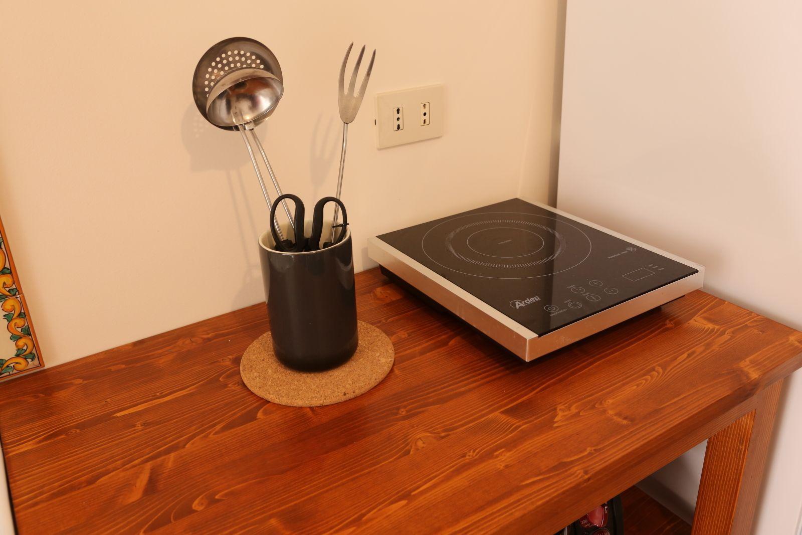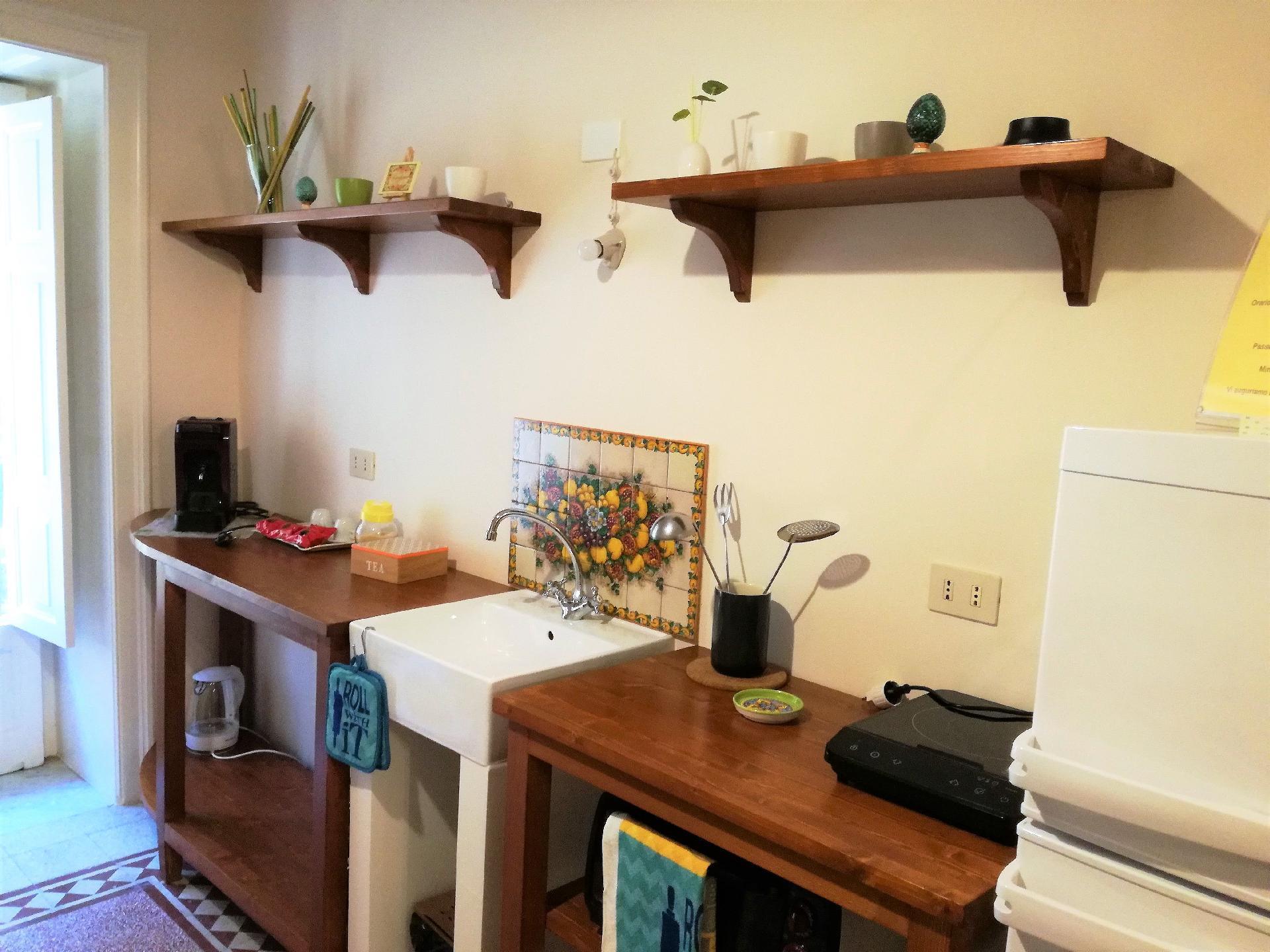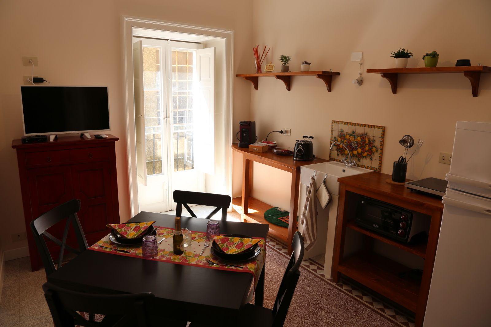 Die 55 Quadratmeter große Wohnung befindet sich in einem historischen Gebäude mit typisch sizilianischem Geschmack, schlicht und elegant. Die alten Zementböden machen sie gemütlich. Sie besteht aus einem Schlafzimmer mit einem Doppelbett, einem großen und geräumigen Kleiderschrank, einem großen Spiegel und einem Balkon, von dem aus man die Schönheit von Ragusa bewundern kann; einem Badezimmer mit Dusche mit Fenster und einem Vorbad mit Waschmaschine und Waschbecken. Die Küche ist mit einer Kochnische mit Induktionskochfeld, Spüle, Geschirr, Espresso-Kaffeemaschine, Backofen, Kühlschrank, Wasserkocher, Toaster, Bügeleisen und Bügelbrett, LCD-Fernseher und kostenlosem Wi-Fi ausgestattet. Das Wohnzimmer ist mit einem bequemen Schlafsofa und einer Leseecke ausgestattet. Die Wohnung ist mit einer Klimaanlage und allen notwendigen Annehmlichkeiten ausgestattet. Nur 10 Minuten zu Fuß und 5 Minuten mit den öffentlichen Verkehrsmitteln von Ibla entfernt.