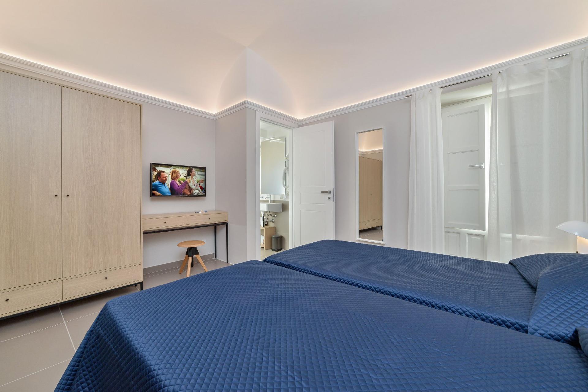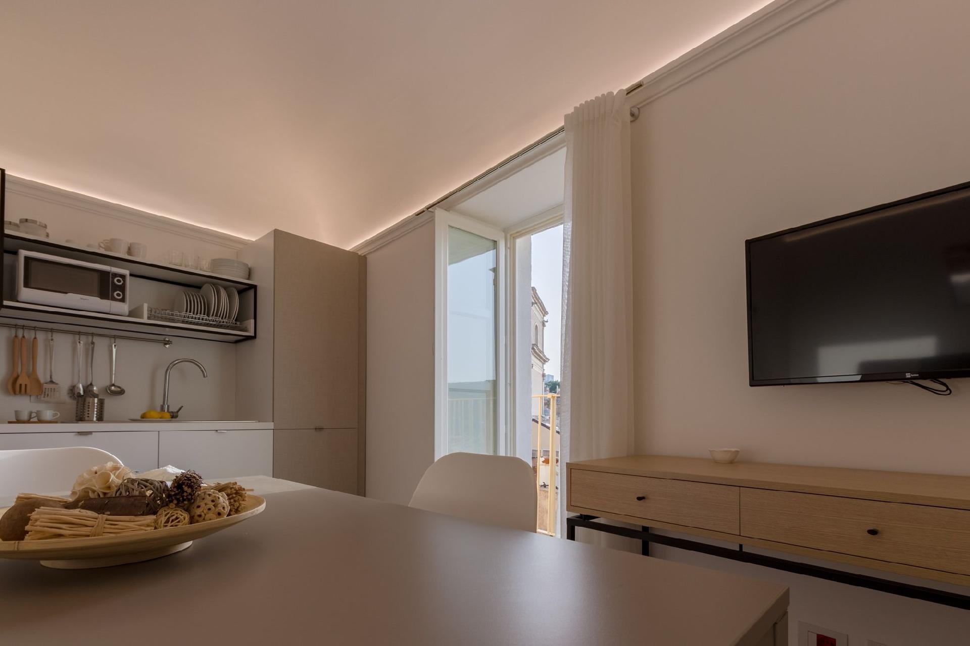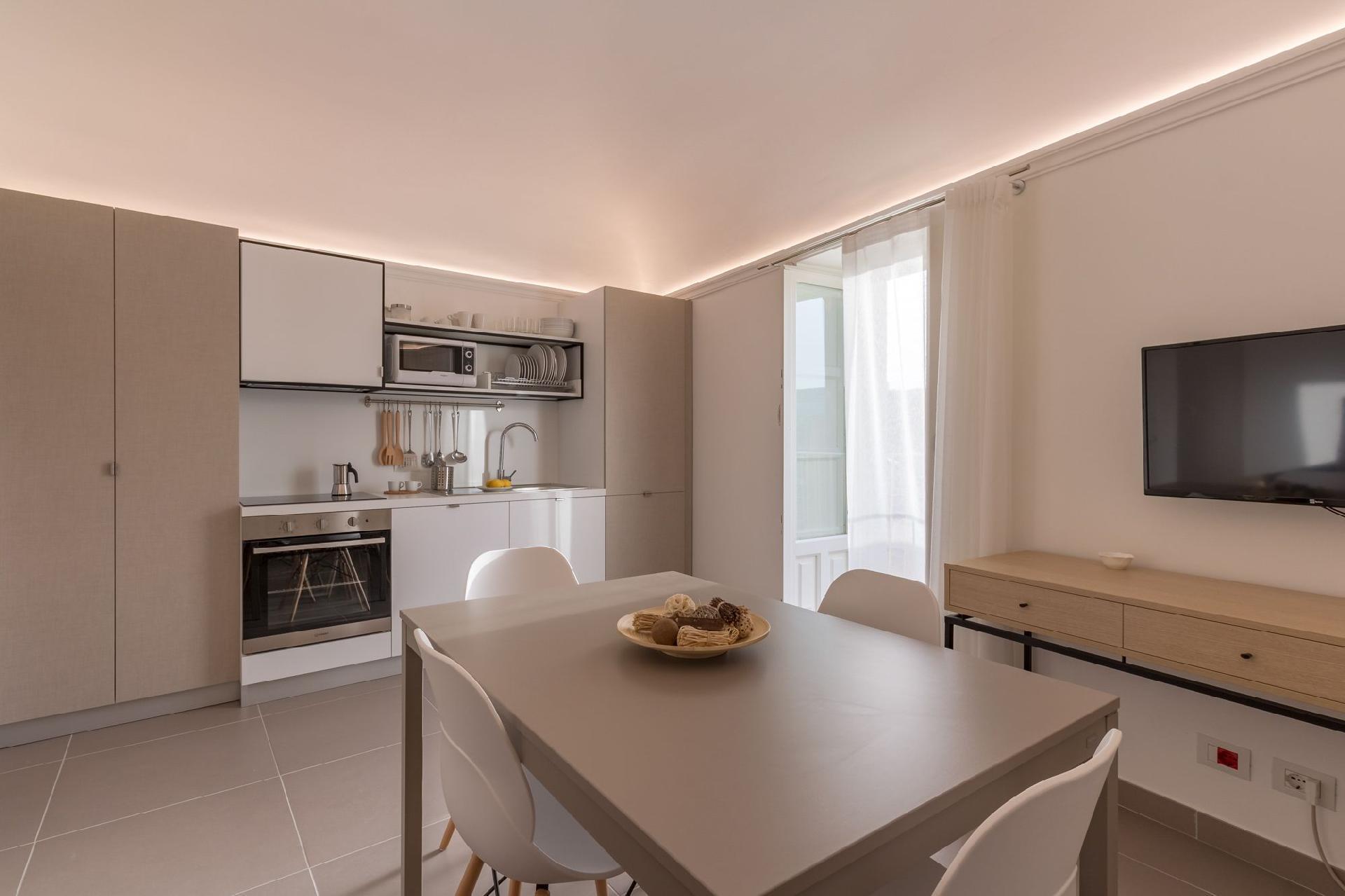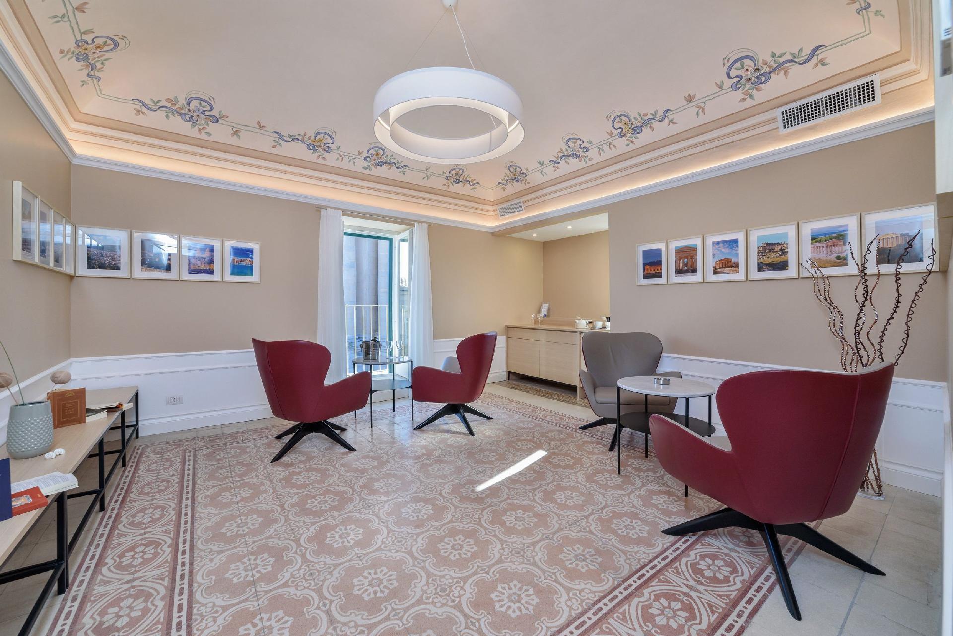 Großes und komfortabel ausgestattetes Appartement mit Balkon mit wunderschönem Blick auf den Dom San Giorgio und die daneben liegende Piazza. Das Appartement befindet sich im zweiten Stock eines Adelspalastes von 1890 und wurde erst kürzlich mit großer Sorgfalt restauriert (2018). Eine breite Treppe in Pechstein führt zum Appartement, das durch seine erlesenen und eleganten Innenbereiche glänzt. Indirekte Beleuchtung bringt die Designermöbel in zarten und warmen Farben besonders gut zur Geltung. Die Unterkunft ist gut ausgestattet und bietet jeglichen Komfort auch dank der Harmonie zwischen historischer Substanz und Moderne, die sich in den verzierten Stuckdecken, den Zierfliesen sowie dem gelungenen Zusammenspiel moderner Möbel mit klarer Linienführung und Vintage-Stil zeigt. Sie besteht aus einem Wohnbereich und einem Schlafbereich mit 2 Schlafzimmern sowie 3 Bädern. Der Wohnbereich besteht aus einem eleganten Wohnzimmer mit Zugang zum Balkon und phantastischem Blick. Das Wohnzimmer mit dekorativem Fliesenboden und mit Fresken bemalten Decken ist mit bequemen Sitzmöbeln für viele schöne Momente der Entspannung ausgestattet. Zudem gibt es einen Großbildfernseher und eine kleine Bar. Eine moderne Küche mit Esszimmermöbeln, TV sowie einer gemütlichen Schlafcouch für zwei Personen bietet eine Kühl,- Gefrierkombination, Geschirrspülmaschine, Mikrowelle und Induktionsherd. Ein Bad mit Massagedusche. Zwei Schlafzimmer: ein großes Schlafzimmer mit Doppelbett mit Blick und eigenes Bad mit Massagedusche; ein Doppelzimmer mit eigenem Bad und Massagedusche geht auf einen kleinen Balkon mit Blick hinaus. Jedes Zimmer ist mit TV und Safe ausgestattet. Klimaanlage in jedem Zimmer, Fön in jedem Bad und Internet-Zugang WLAN. Ein Waschraum zur gemeinsamen Nutzung mit den anderen zwei Appartements mit Waschmaschine und Trockner.