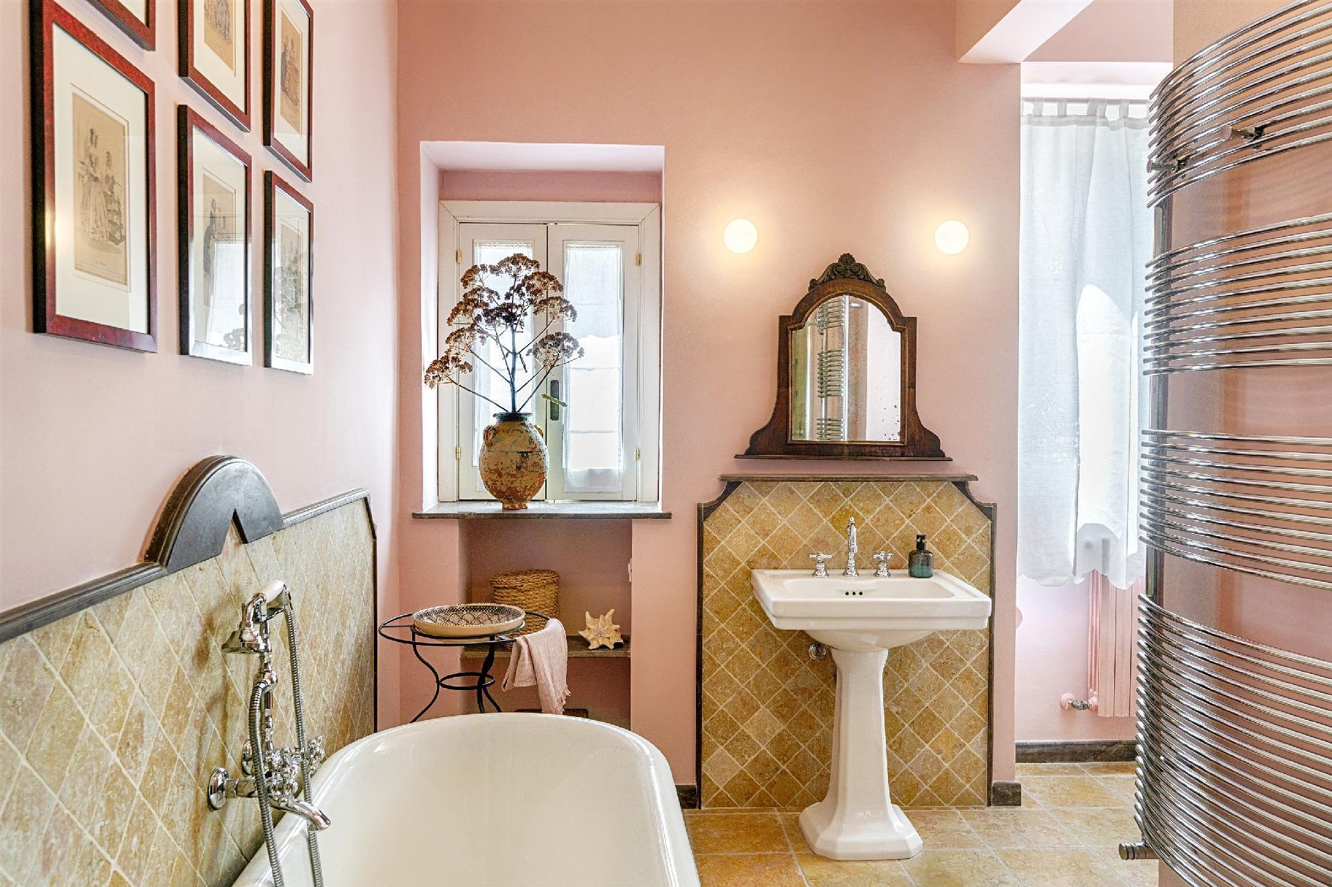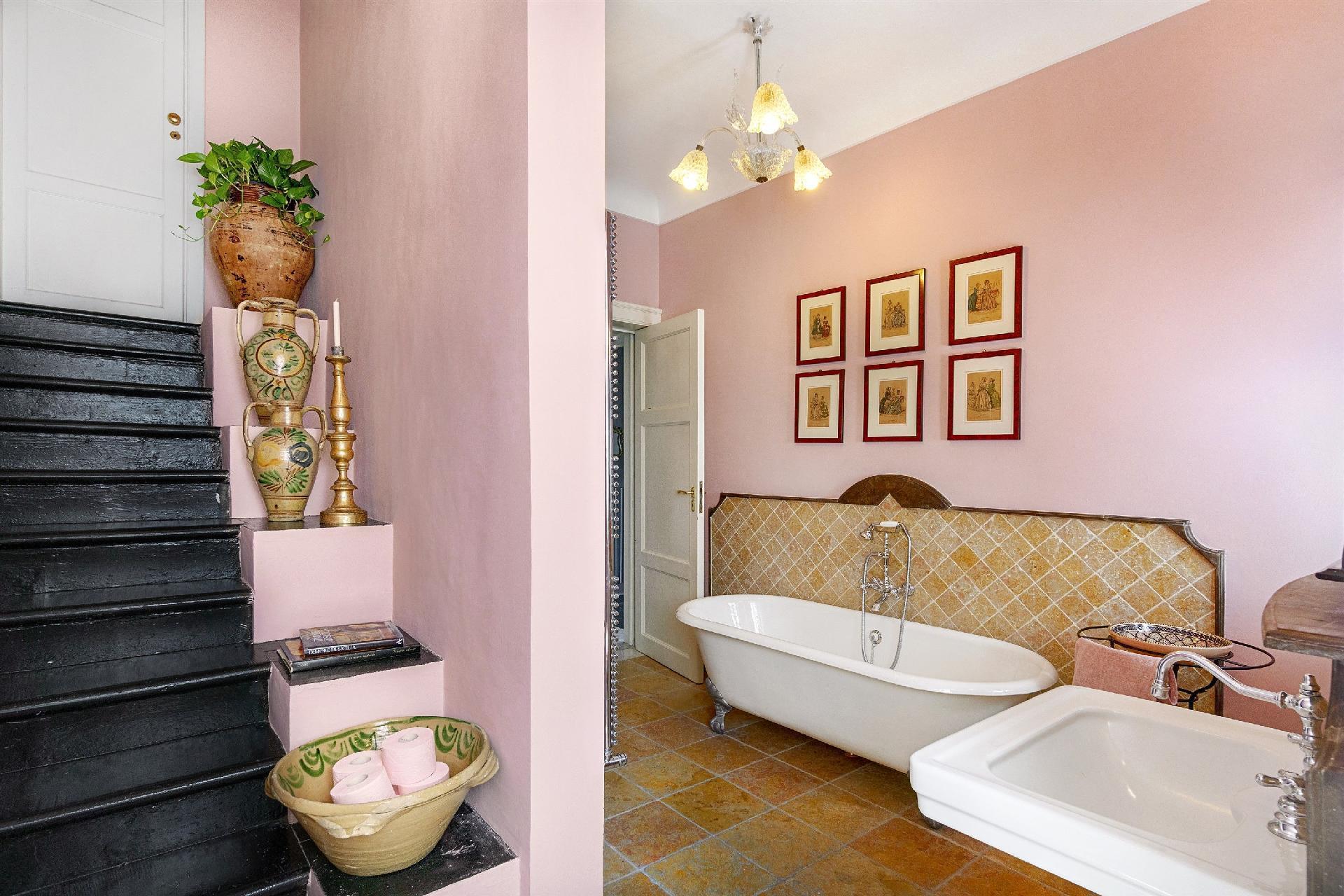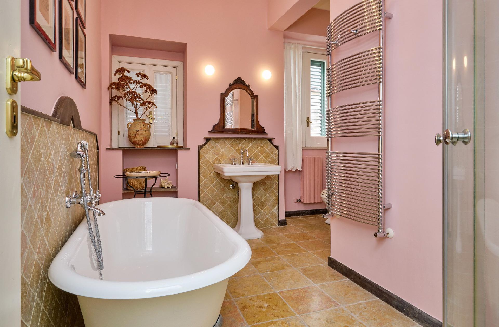 Ein großes, luxuriöses Badezimmer mit Dusche und eleganter Badewanne im antiken Stil (Badewanne nicht verfügbar).