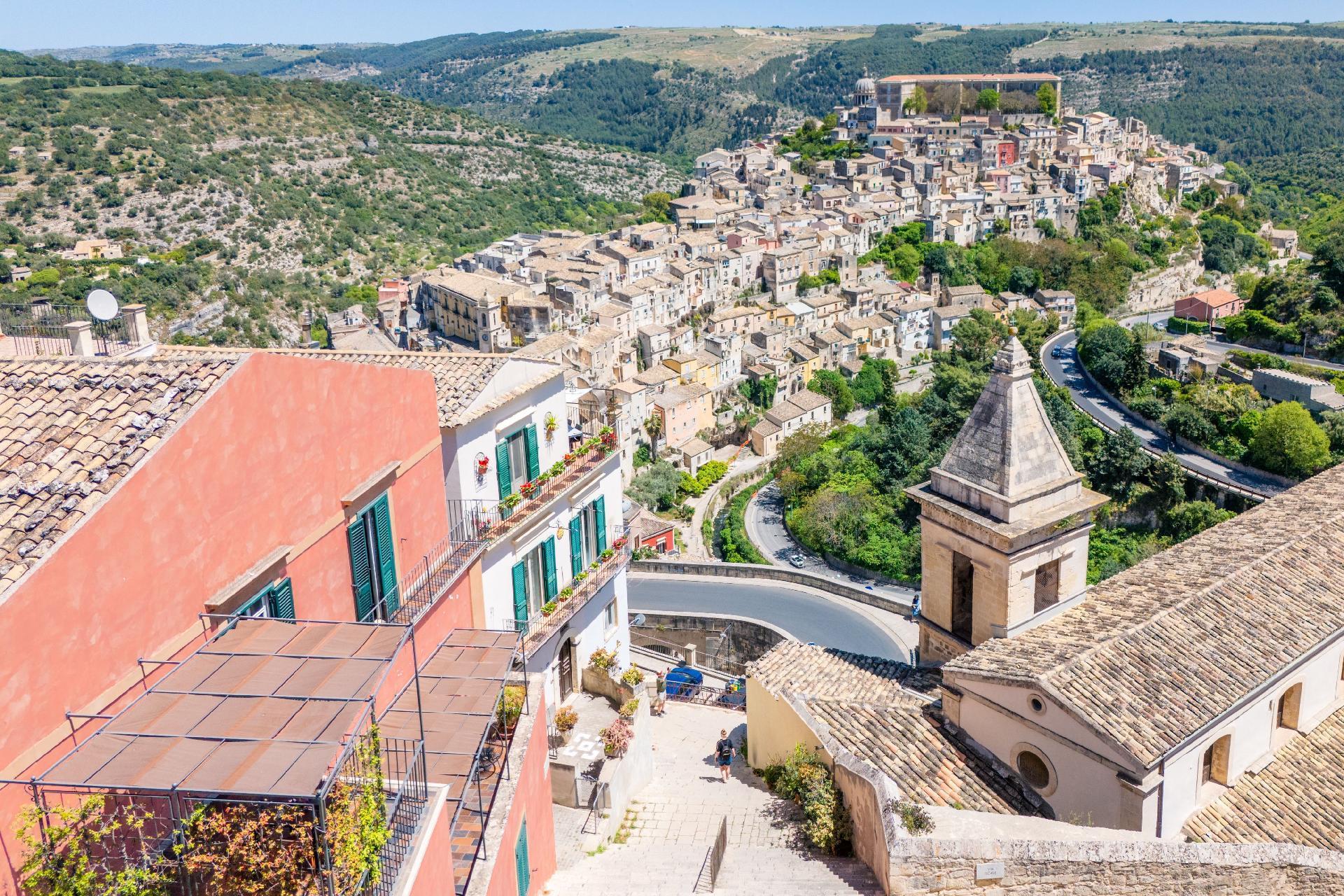 Ragusa Ibla, das historische Zentrum der Stadt Ragusa, ist ein kleines, auf einem Hügel gelegenes Dorf mit malerischen kleinen Häusern und engen Gassen, die von der majestätischen Kathedrale San Giorgio überragt werden.