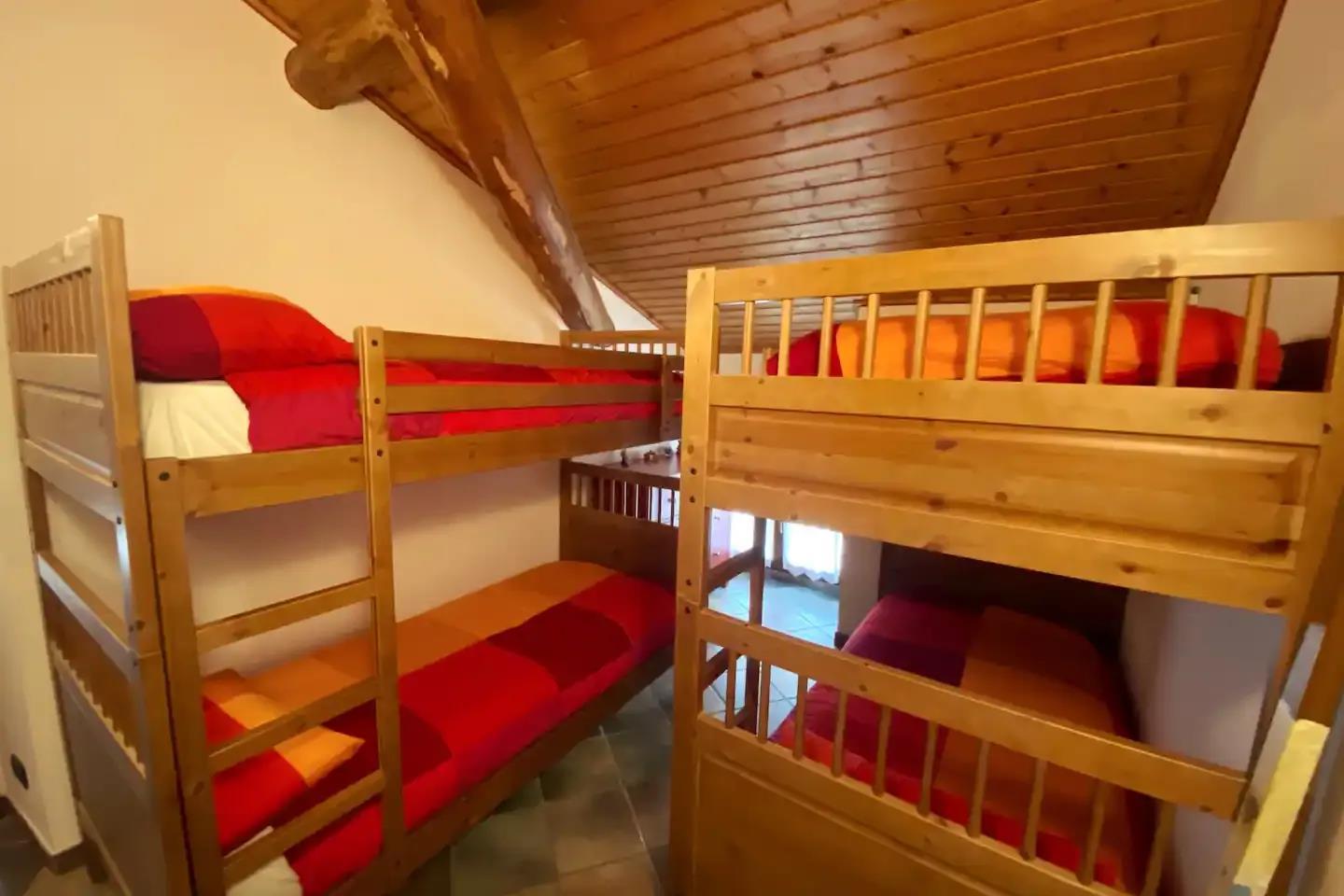 Schlafmöglichkeiten: Anzahl Doppelbetten (größer als 1,80 m Breite): 1; Anzahl Etagenbetten: 2; Anzahl Etagenbetten: 2