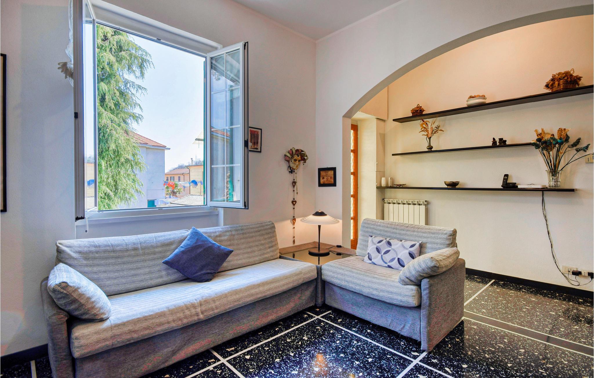Gelegen im Dorf Santa Maria del Campo in kurzer Entfernung zur Stadt Rapallo, ist diese Ferienwohnung die ideale Wahl für einen wunderschönen Urlaub an der malerischen Riviera. In der modern eingerichteten Wohnung mit gemütlichen Möbeln spüren Sie eine warme Stimmung. Im Sofabereich können Sie Ihre Ausflüge planen, plaudern und einfach entspannen. Kaufen Sie saftige Wassermelone, die Sie zusammen mit kalten Getränken unter dem Sonnenschirm im blumigen Garten genießen können. Bewundern Sie vom Balkon aus den Sonnenuntergang. In der Nähe finden Sportler einen Tennisplatz. Erkunden Sie das Dorf und wandern Sie in der Umgebung.