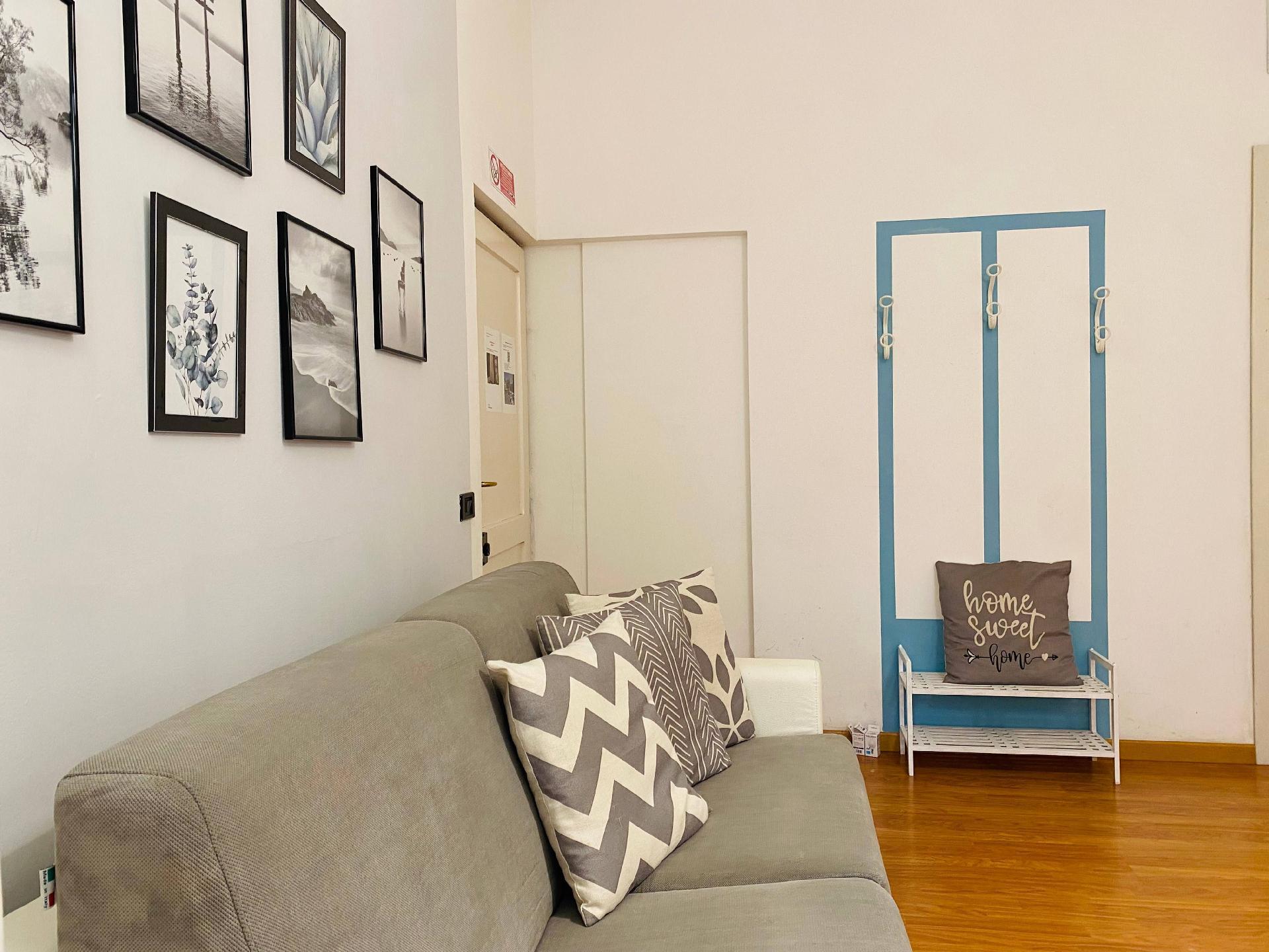 Das Innere unserer Wohnung wurde so gestaltet, dass es Ihnen maximalen Komfort bietet: Sie finden ein gemütliches Wohnzimmer für entspannende Momente, eine voll ausgestattete Küche mit allen notwendigen Utensilien für die Zubereitung und den Verzehr Ihrer Mahlzeiten, einschließlich Zucker, Salz und Öl zu Ihrer Verfügung. Für Ihren Komfort steht im Hauswirtschaftsraum neben dem Schlafzimmer eine Waschmaschine mit Seifentabletten zur Verfügung, und im Kühlschrank finden Sie frisches Wasser.