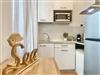 Kochen: Induktionsherd; Kaffeepadmaschine; Kühlschrank; Mikrowelle; Tiefkühlschrank; Toaster; Wasserkocher