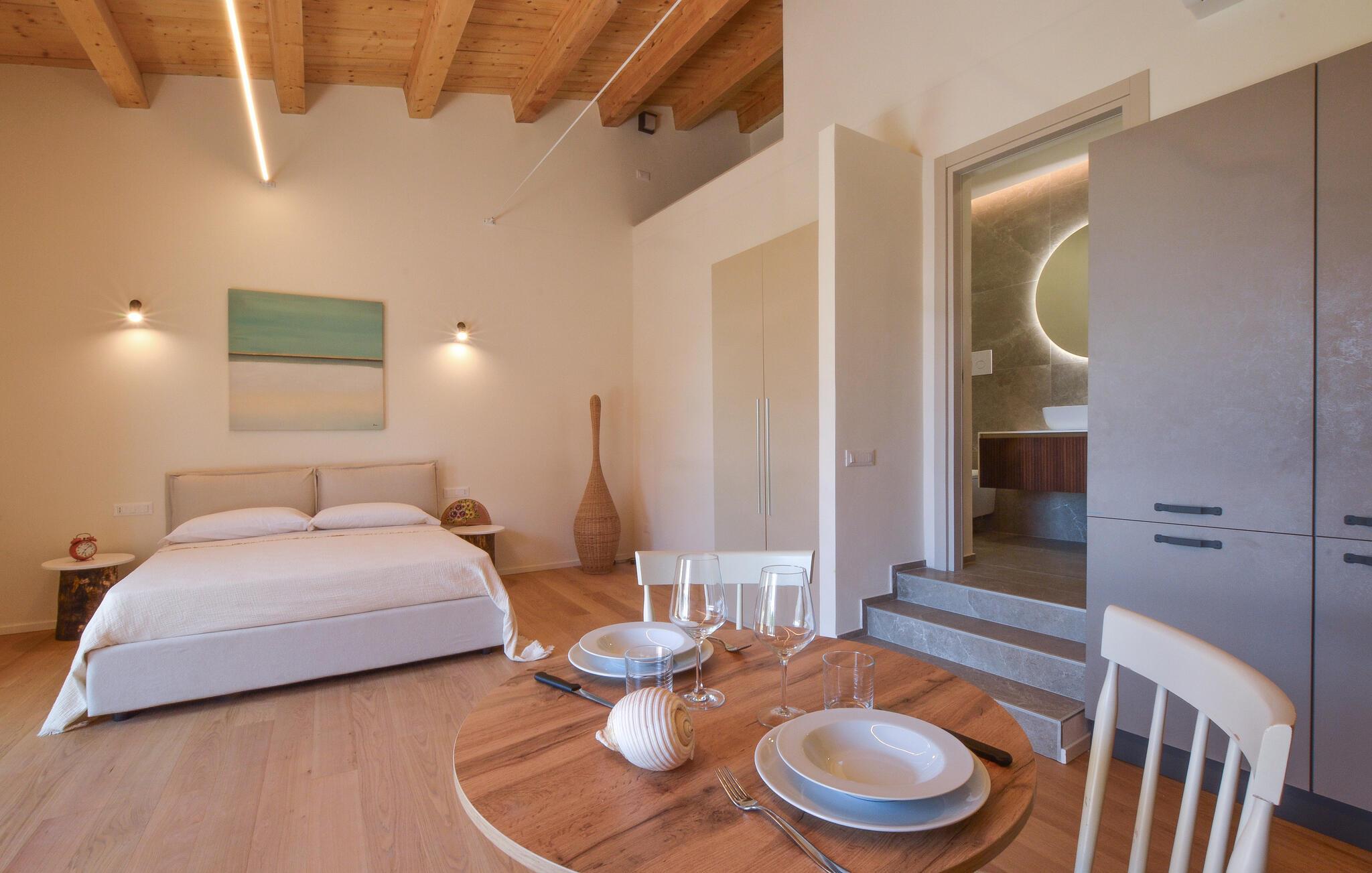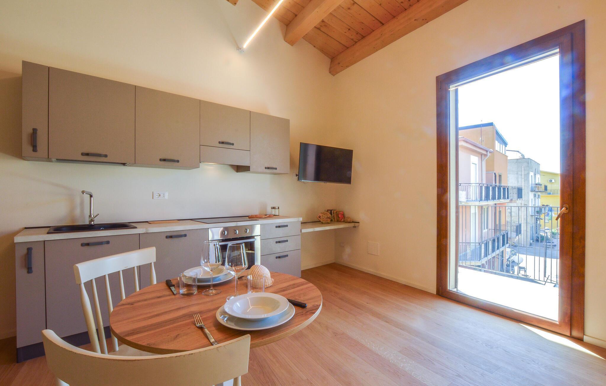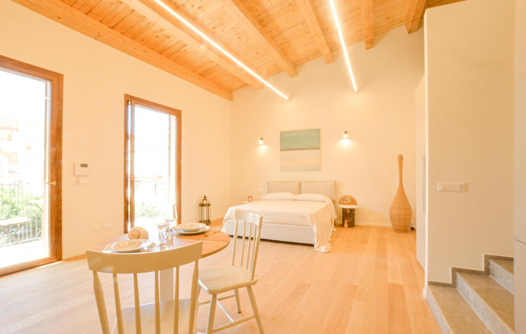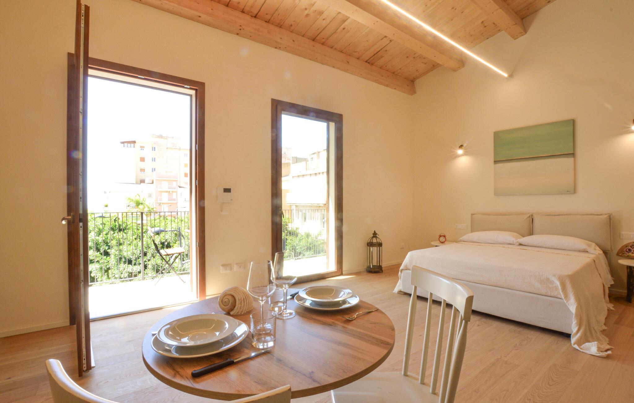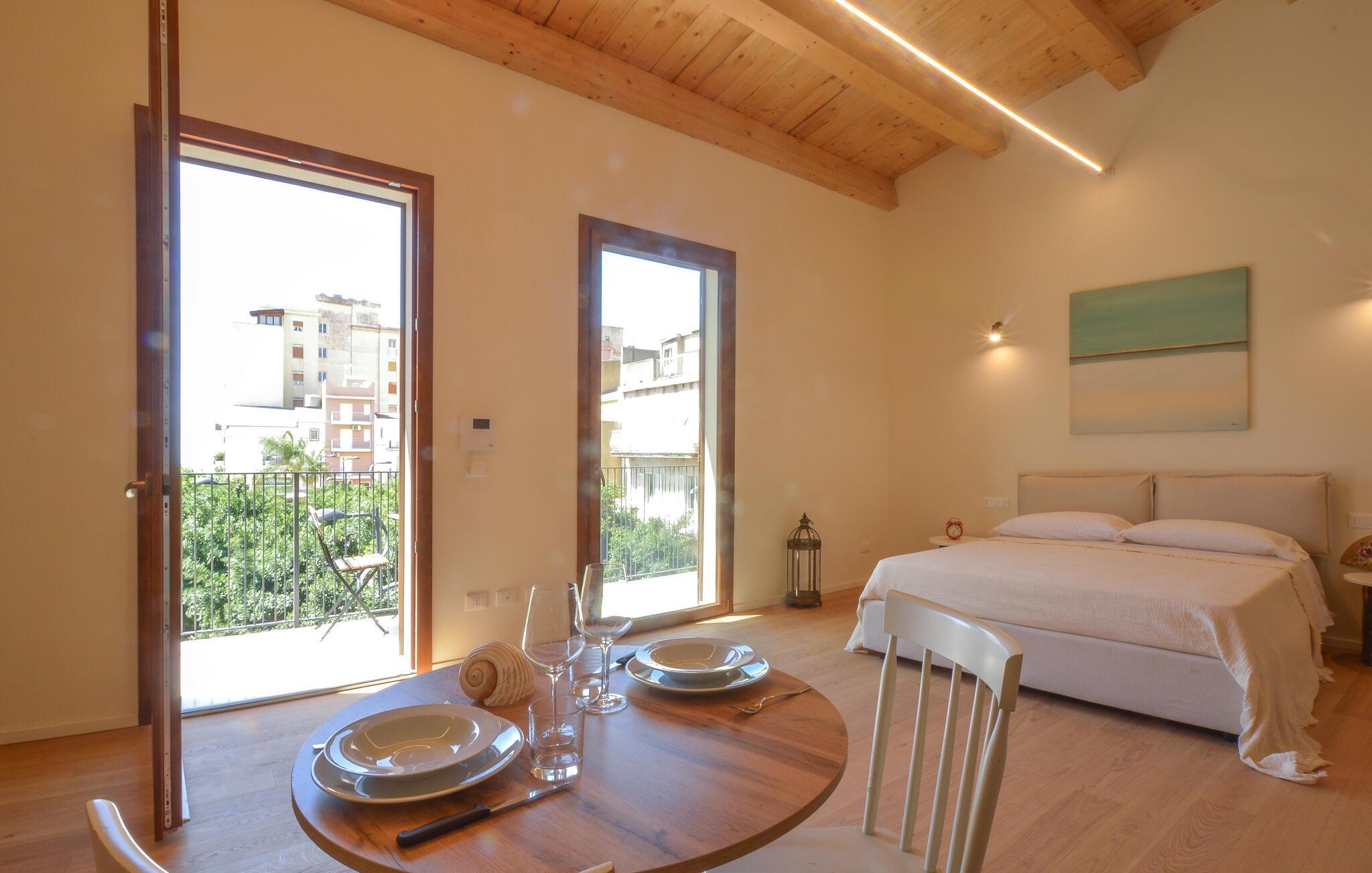 Tauchen Sie ein in diesen mediterranen Rückzugsort im Herzen von Realmonte. Das moderne, lichtdurchflutete Studioapartment bietet Ihnen ein stilvolles und offenes Ambiente, das ideal zum Entspannen einlädt. Genießen Sie Ihren Kaffee auf dem großzügigen Sonnenbalkon, wo Sie das Treiben in den Straßen verfolgen und den Blick bis zum Meer schweifen lassen können – ein perfekter Ort, um den Tag ruhig zu beginnen oder ausklingen zu lassen.