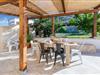Parterre: (offene Küche(Kochplatte, Dunstabzugshaube, Kaffeemaschine, Espressomaschine, Spülmaschine, Kühl-/Gefrierkombination, Waschbecken, Waschmaschine), Wohn/Esszimmer(Doppelschlafcouch, TV, Esstisch, Herd, Sitzecke, Klimaanlage), Schlafzimmer(Doppelbett, Klimaanlage), Schlafzimmer(Etagenbett), Badezimmer(Dusche, Waschbecken, Toilette, Bidet, Föhn), Heizung(durch Klimaanlagen), Terrasse(alleinige Nutzung, 30 m2)) Holzherd, Dusche, Patio, Garten, Gartenmöbel, Liegen, Grill, Parkplatz, Sonnenschirm, Pool(Gemeinschaftliche Nutzung mit anderen Gästen, im Garten, geöffnet von Mai bis einschließlich Okt), Markise