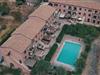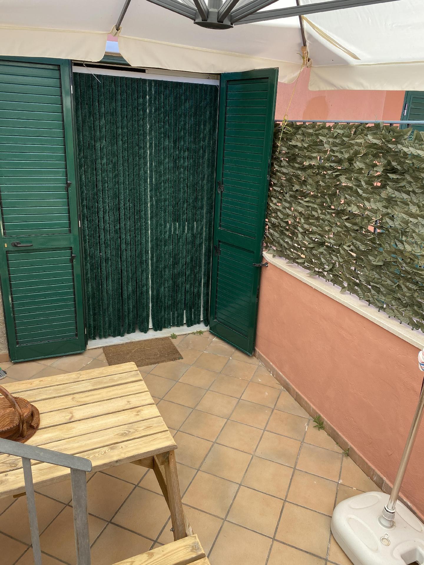 Draußen gibt es eine 16 m² große Terrasse mit Sonnenschirm, Sitzgelegenheiten und einem Grill. Der Komplex verfügt über einen Gemeinschaftspool (geöffnet von Ende Juni bis Anfang September). Ein Garten mit Bäumen und Blumenbeeten umgibt den Pool. Parkmöglichkeiten gibt es auf dem zentralen Parkplatz der Anlage. Zwei Fahrräder für Erwachsene und eines für ein Kind können direkt beim Eigentümer gemietet werden.