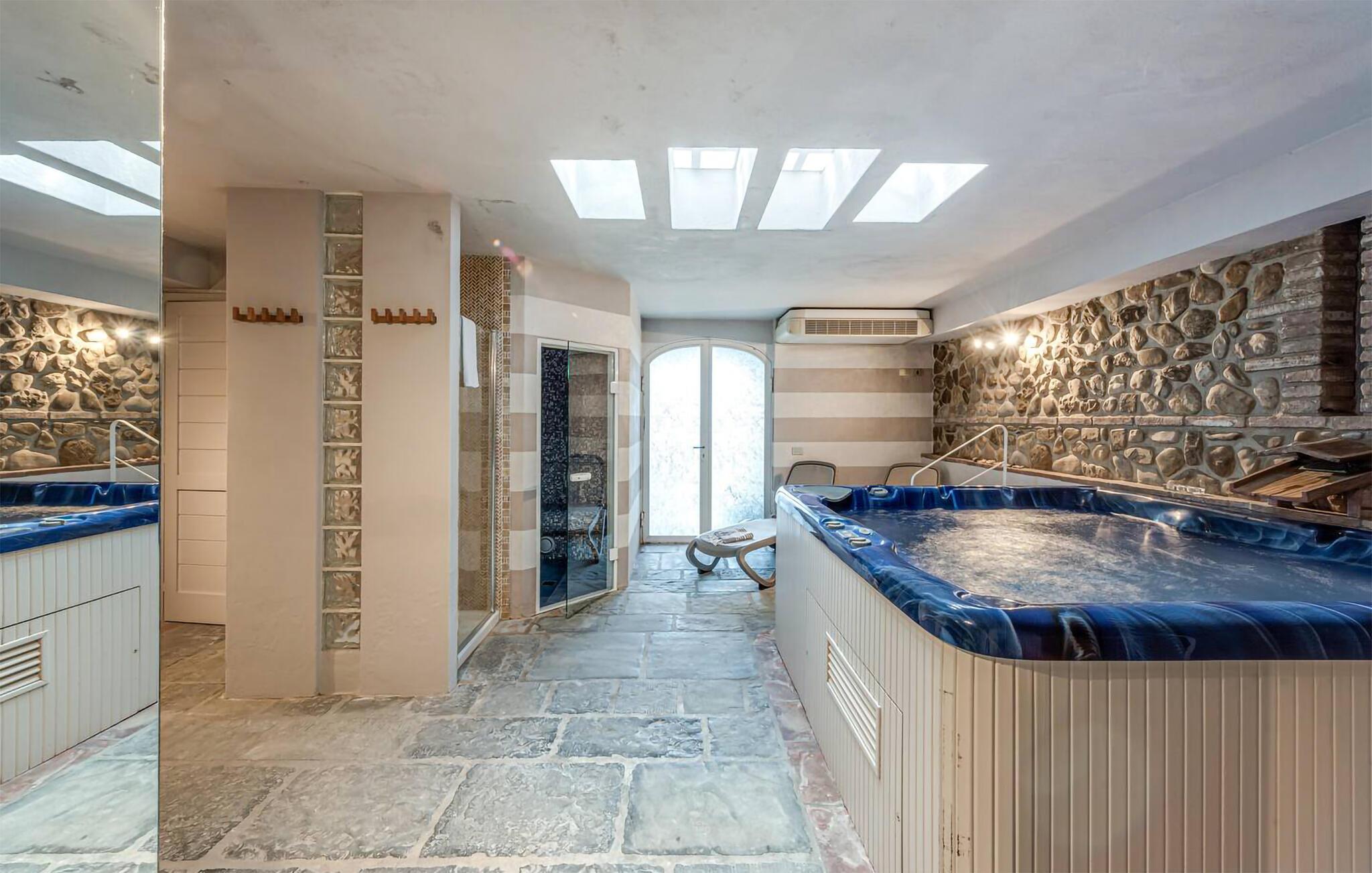 Eingebettet in ein gepflegtes Grundstück und umgeben von einer bezaubernden Naturlandschaft können Sie in diesem wunderschönen Ferienhaus den Alltag weit hinter sich lassen. Hier erwartet Sie pure Entspannung in geschmackvoll eingerichteten Räumlichkeiten, in denen rustikaler Charme geschickt mit modernen Annehmlichkeiten kombiniert wurde. Freuen Sie sich auf entspannte Mahlzeiten und behagliche Lesestunden unter alten Holzbalken, streamen Sie einen Film oder gönnen Sie sich wohlige Momente in der Sauna oder im Whirlpool.