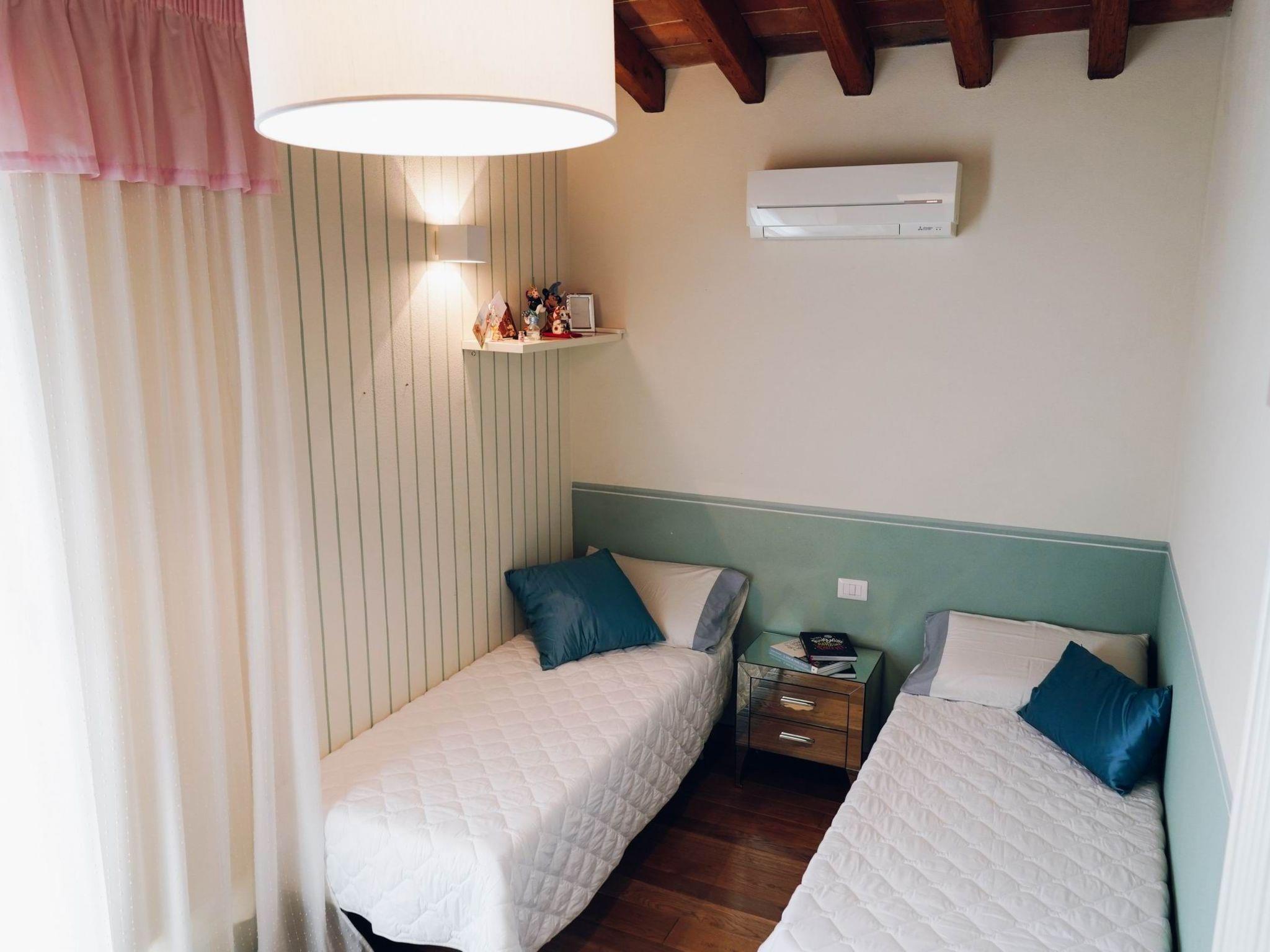 Das Innere der Wohnung erstreckt sich über zwei Ebenen und bietet auf 55 Quadratmetern Platz für bis zu 4 Personen mit maximalem Komfort. Im Erdgeschoss befindet sich ein geräumiges Wohnzimmer mit Satellitenfernsehen und einem gemütlichen Kamin, flankiert von einer voll ausgestatteten Küchenzeile (mit Kühlschrank mit Gefrierfach, Waschmaschine, Geschirrspüler, Backofen, Toaster, Wasserkocher, Mokka- und amerikanischer Kaffeemaschine sowie einem Bügeleisen) und einer Essecke. Im ersten Stock befinden sich die Schlafräume: ein Schlafzimmer mit Doppelbett, ein Badezimmer mit Dusche und ein Schlafzimmer mit zwei Einzelbetten, die in ein weiteres Doppelbett umgestellt werden können. Die Zimmer sind mit Klimaanlage, Wi-Fi, Haartrockner, Safe und Alarmanlage ausgestattet, um Sicherheit und Komfort zu gewährleisten.