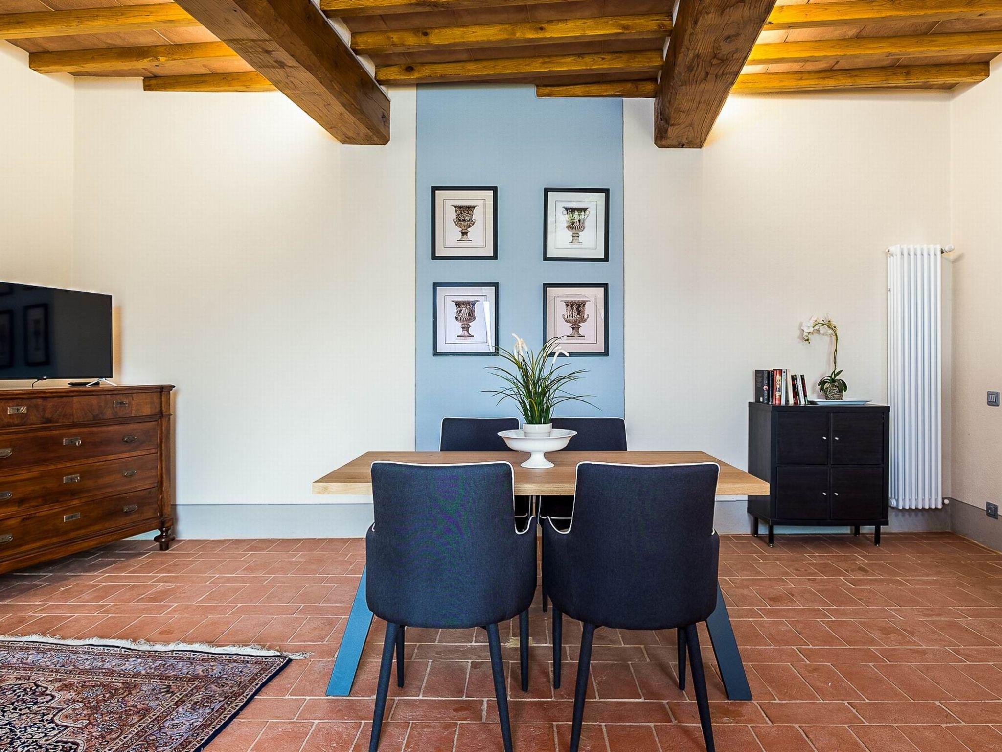 Im Inneren ist die Wohnung auf zwei gemütliche Ebenen aufgeteilt. Im Erdgeschoss befindet sich ein einladender, offener Bereich mit einer funktionellen Küchenzeile, die mit Kühl- und Gefrierschrank, Geschirrspüler, Mikrowelle, Toaster, Wasserkocher, Mokkamaschine und Bügeleisen ausgestattet ist und an den Ess- und Wohnbereich angrenzt. Hier finden Sie auch einen Satellitenfernseher und eine praktische Toilette. Wenn Sie die Treppe hinaufgehen, erreichen Sie das Hauptschlafzimmer mit Doppelbett und eigenem Bad mit Dusche; im ersten Stock befindet sich ein weiteres Schlafzimmer mit Doppelbett und eigenem Bad, ebenfalls mit Dusche, das Privatsphäre und Komfort garantiert. Die Wohnung ist auch mit Klimaanlage in den Zimmern, Wi-Fi, einem Haartrockner, einem Safe und einer Alarmanlage für Ihre Sicherheit ausgestattet.