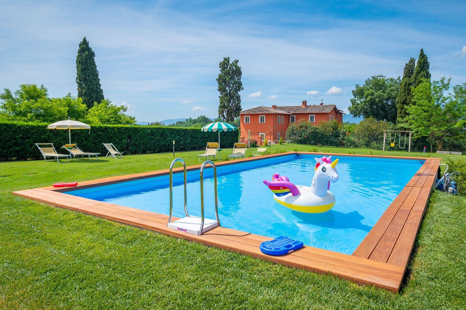 Entdecken Sie den Charme dieser eleganten Wohnung, in der bis zu 4 Personen bequem Platz finden. Im ersten Stock eines gemütlichen Gebäudes gelegen, verspricht diese Unterkunft einen unvergesslichen Aufenthalt, nur wenige Schritte von den erfrischenden Swimmingpools entfernt, die nur 30 Meter entfernt sind. Mit einem separaten Eingang und einem privaten, möblierten Außenbereich im Garten, der mit einem Grill ausgestattet ist, ist diese Wohnung eine ideale Wahl für diejenigen, die einen entspannten und komfortablen Urlaub suchen. Im Inneren finden Sie ein geräumiges Wohnzimmer mit Kamin für gemütliche Abende, ausgestattet mit Satellitenfernsehen und einer gemütlichen Essecke. Die offene Küche ist mit allem ausgestattet, was Sie für die Zubereitung köstlicher Mahlzeiten benötigen: Kühlschrank, Geschirrspüler, Backofen, Toaster, Wasserkocher, Mokka- und amerikanische Kaffeemaschine sowie ein praktisches Bügeleisen. Die Wohnung verfügt über zwei bequeme Doppelzimmer und zwei voll ausgestattete Badezimmer mit Duschen, die Privatsphäre und Komfort für alle Gäste gewährleisten. Eine Klimaanlage, die teilweise vorhanden ist, sowie Wi-Fi, ein Haartrockner und ein Safe vervollständigen die Erfahrung eines sorglosen Aufenthalts. Der Garten, der zur gemeinsamen Nutzung zur Verfügung steht, lädt die Gäste ein, Momente der Entspannung im Freien zu verbringen, inmitten des Grüns und der Ruhe der Umgebung. Dieser Außenbereich ist ideal, um eine gute Lektüre zu genießen, eine Mahlzeit im Freien zu sich zu nehmen oder einfach nur die Gesellschaft zu genießen, wobei ein Grill für unvergessliche Abende unter dem Sternenhimmel zur Verfügung steht. Ein großer Gemeinschaftspool mit zwei Schwimmbecken (geöffnet von Mai bis Mitte Oktober, 16x8 m, 140 cm tief, mit Salzwasser und 12x6 m, 60 cm tief), umgeben von Liegestühlen, Sonnenliegen, Gartenschirmen und einem kleinen Kinderbereich mit Sandkasten und Schaukel. Die Wohnung befindet sich in einer privilegierten Lage, nur 4 km vom nächsten Zentrum entfernt, wo Sie Lebensmittelgeschäfte und Lokale entdecken können, in denen Sie die lokale Küche genießen können. Die Umgebung bietet ein perfektes Gleichgewicht zwischen Ruhe und der Möglichkeit, die Wunder der Gegend zu erkunden, was sie zu einem idealen Ausgangspunkt für Tagesausflüge oder angenehme Spaziergänge in der Natur macht. Diese Wohnung ist eine Oase der Ruhe und des Komforts und ist die perfekte Wahl für alle, die einen erholsamen Urlaub verbringen möchten, ohne auf den Komfort ihres Zuhauses verzichten zu müssen. Die Möglichkeit, ein Haustier mitzubringen, bereichert das Erlebnis noch zusätzlich und macht es zum idealen Ort, um mit Ihren Liebsten in einer bezaubernden Umgebung wertvolle Erinnerungen zu schaffen. Verpassen Sie nicht die Gelegenheit, einen Traumaufenthalt in dieser einzigartigen Wohnung zu erleben.