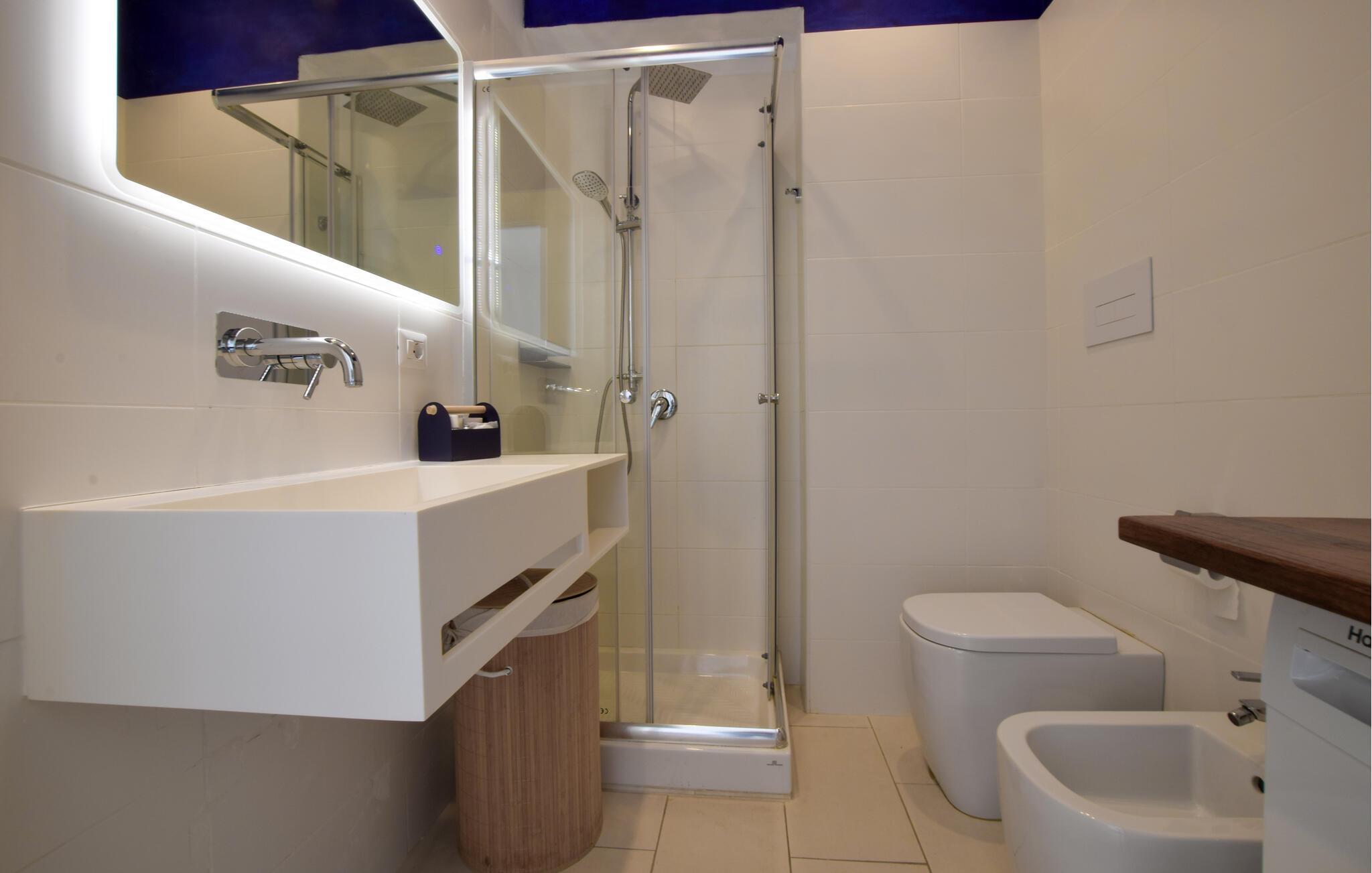 Badezimmer (nr. 1) - WC. Warmes und kaltes Wasser. Dusche