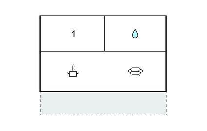 Wohnraum/Küche - 1 Schlafmöglichkeit. (Schlafsofa,Matratze,Sonstiges).