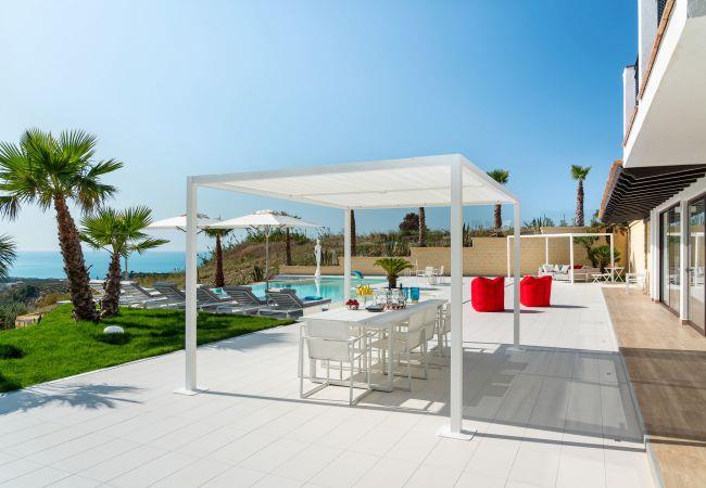 Camemi ist eine luxuriöse Villa mit Swimmingpool in wunderschöner Panoramalage in der Umgebung von Ribera, 40 km nördlich von Agrigent.