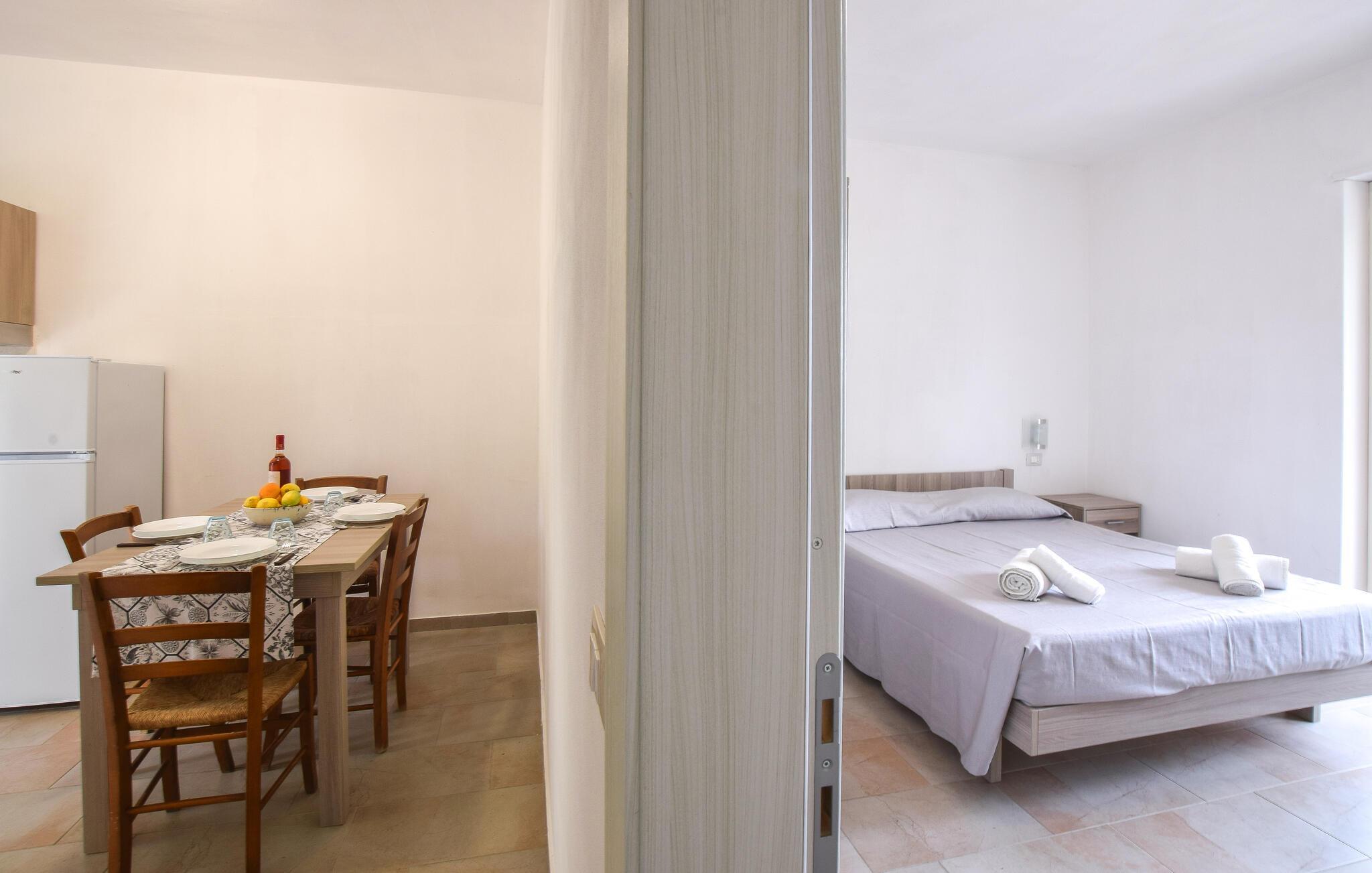Diese helle und praktisch eingerichtete Ferienwohnung bietet Ihnen ein behagliches Zuhause, wenn Sie erholsame Momente mit reizvollen Sehenswürdigkeiten kombinieren möchten. Planen Sie Ihre Unternehmungen bei leckeren Pastagerichten am einladenden Esstisch, gönnen Sie sich wohltuende Siestas, während eine angenehme Brise durch die Räume strömt, und freuen Sie sich auf entspannte Spieleabende oder ruhige Lesestunden.