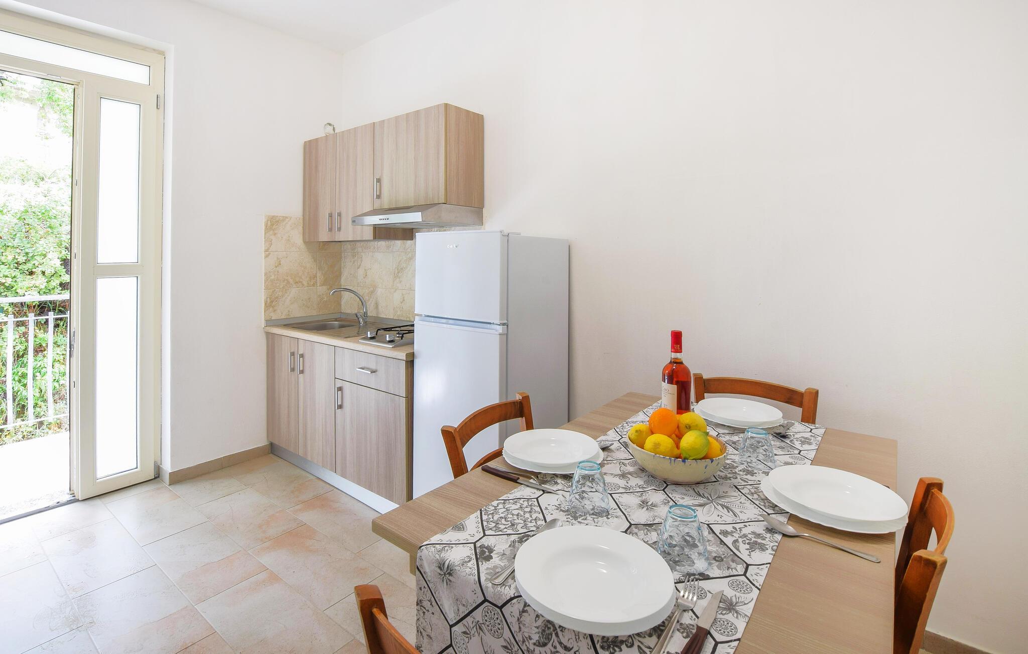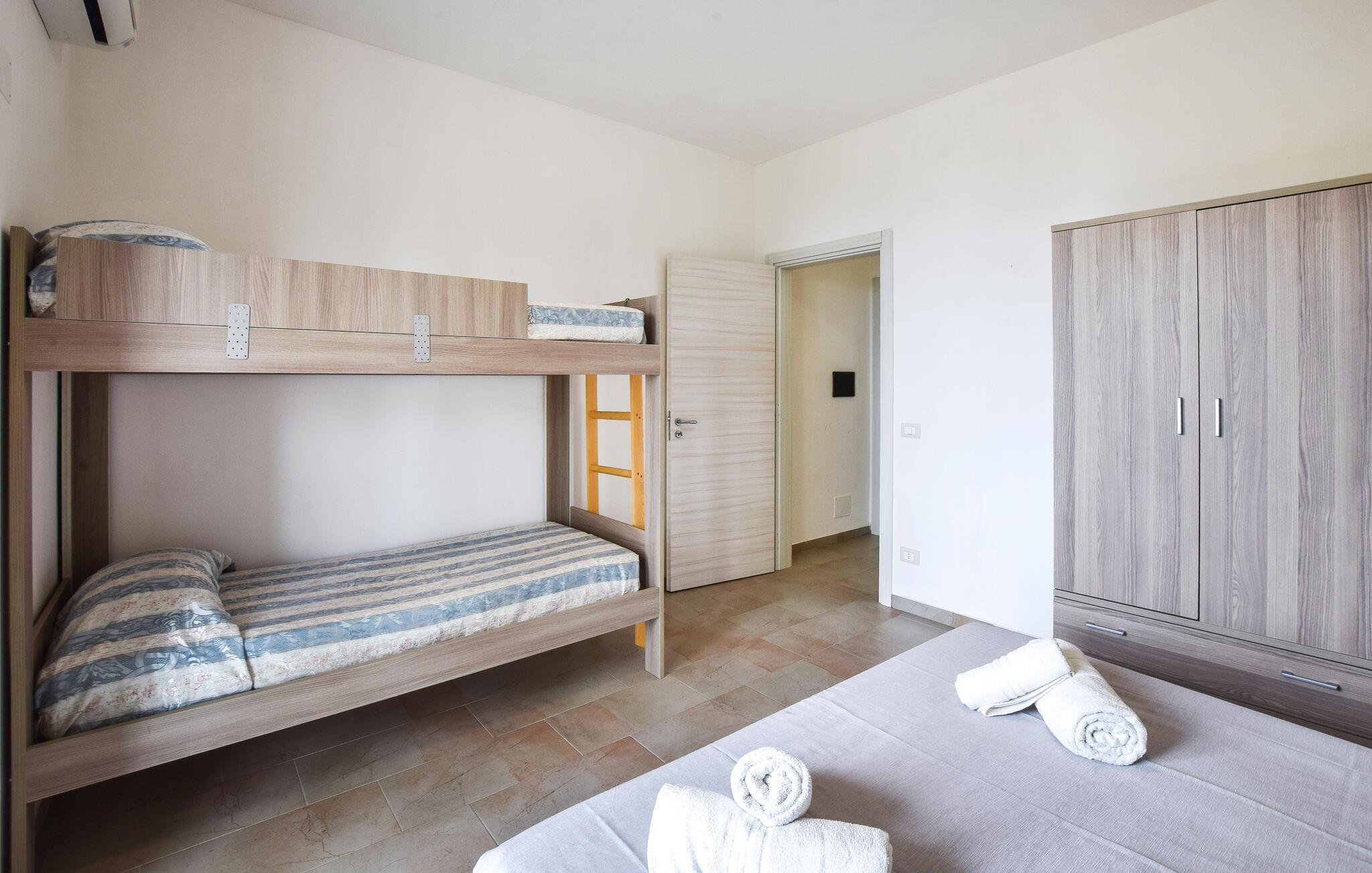 Diese helle und praktisch eingerichtete Ferienwohnung bietet Ihnen ein behagliches Zuhause, wenn Sie erholsame Momente mit reizvollen Sehenswürdigkeiten kombinieren möchten. Planen Sie Ihre Unternehmungen bei leckeren Pastagerichten am einladenden Esstisch, gönnen Sie sich wohltuende Siestas, während eine angenehme Brise durch die Räume strömt, und freuen Sie sich auf entspannte Spieleabende oder ruhige Lesestunden.