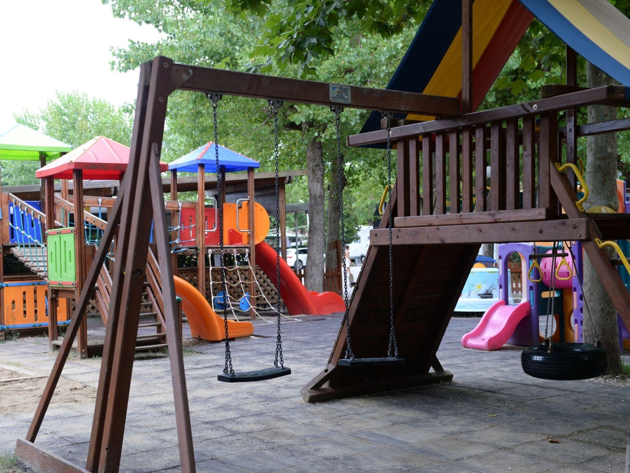 Kinderfreundliche Ferienanlage "Happy Camp Mobil Homes in Riccione". Am Ortsrand, 2.9 km vom Zentrum von Riccione, 2.2 km vom Zentrum von Misano Adriatico, 600 m vom Meer, 600 m vom Strand. Zur Mitbenutzung: naturbelassenes Grundstück, Schwimmbad (25 x 12 m, 120 - 310 cm tief, saisonale Verfügbarkeit: 01.Mai. - 20.Sep.). Kinderbecken, Aussendusche, Sprudelbad, Tennis, Tischtennis, Boccia, Volleyballfeld, Kinderspielplatz. In der Anlage: Empfang, Restaurant, Bar, Wireless LAN, Fitnessraum, Einkaufsmöglichkeit, Kiosk, Waschmaschine, Wäschetrockner (zur Mitbenutzung, extra), Fahrradverleih. Halbpension auf Anfrage (extra). Parkplatz. Bushaltestelle 150 m, Bahnstation "Riccione" 2.5 km, Sandstrand 600 m. Nahe gelegene Sehenswürdigkeiten: Misano World Circuit Marco Simoncelli 5 km, Gabicce Monte 11 km, Gradara 12 km, Rimini 15 km, San Marino 33 km. Bitte beachten: Animation. Geeignet für Familien, Babyausstattung auf Anfrage (extra). Jugendgruppen nur auf Anfrage.