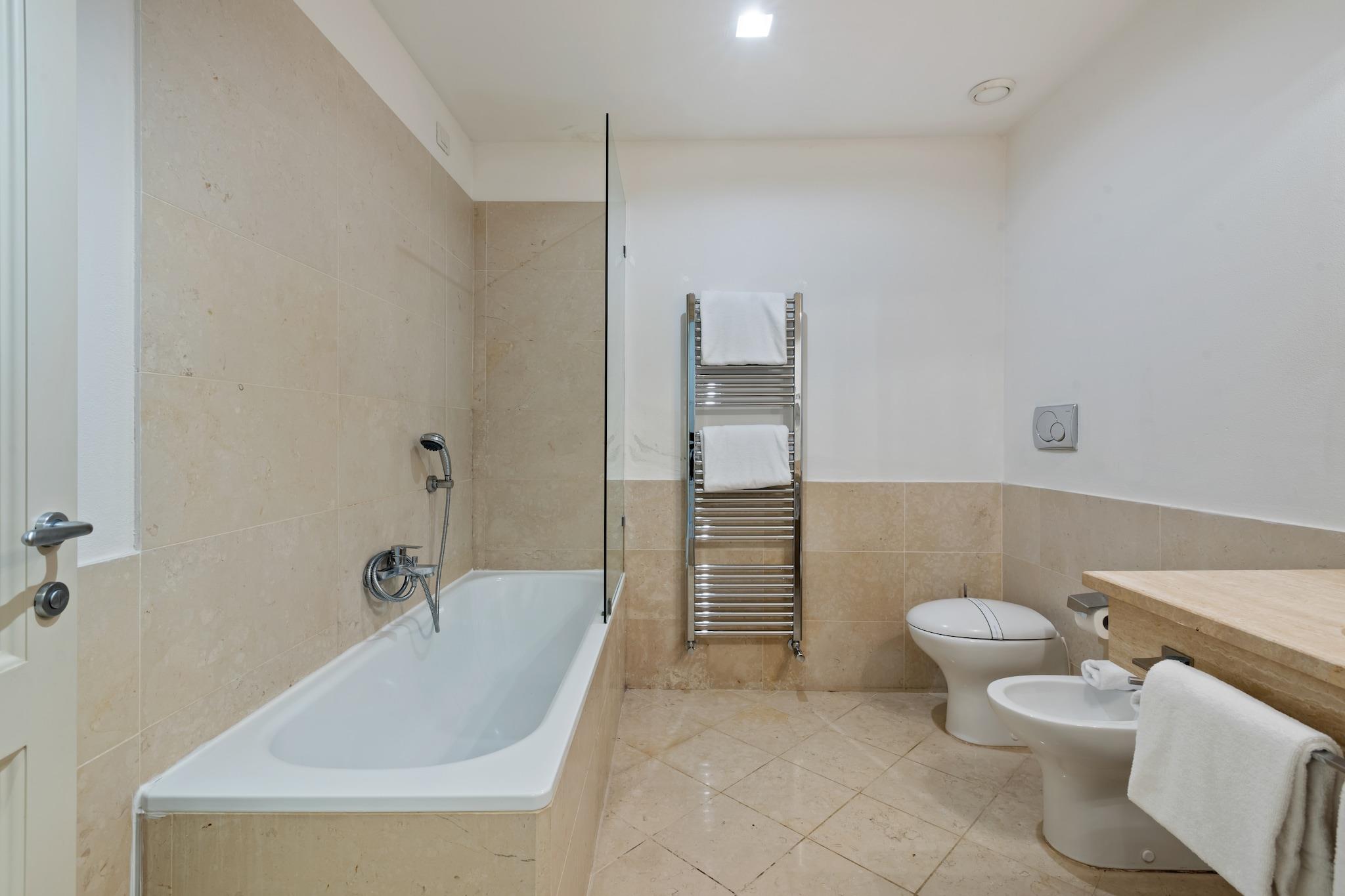 Parterre: (offene Küche(Backofen, Mikrowelle, Spülmaschine, Kühl-/Gefrierkombination), Wohn/Esszimmer(TV(Satellit)), Schlafzimmer(Doppelbett), Schlafzimmer(Doppelbett), Badezimmer(Badewanne mit Dusche, Waschbecken, Toilette, Bidet), Badezimmer(Badewanne mit Dusche, Waschbecken, Toilette, Bidet)) Waschmaschine, Heizung(elektrisch, Zentral), Klimaanlage, Garten(Gemeinschaftliche Nutzung mit anderen Gästen), Gartenmöbel, Parkplatz, Pool(Gemeinschaftliche Nutzung mit anderen Gästen, 20 x 12 m., geöffnet von 1/2 Mai bis einschließlich 1/2 Sep)