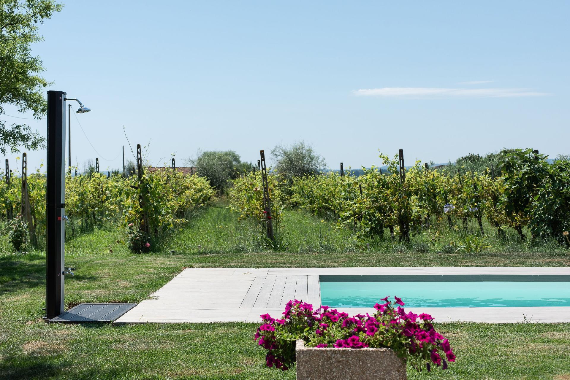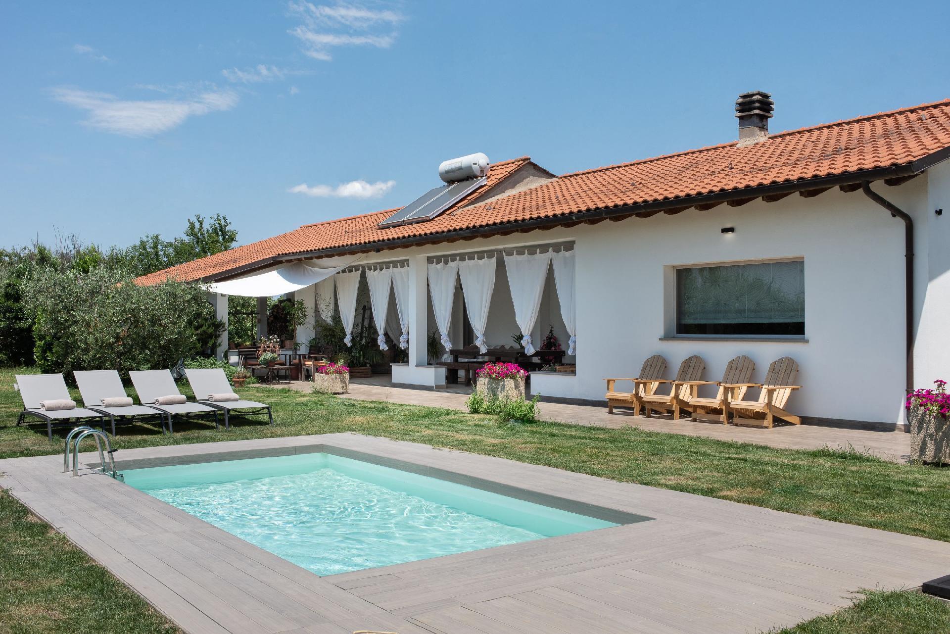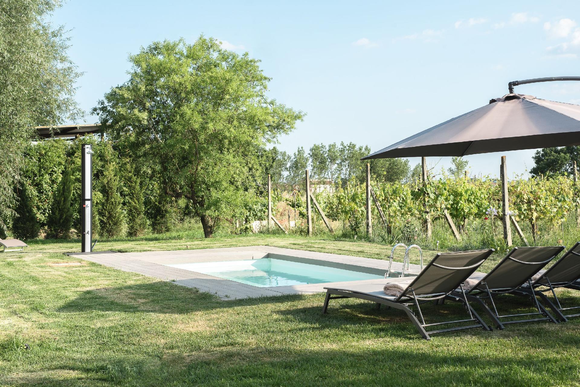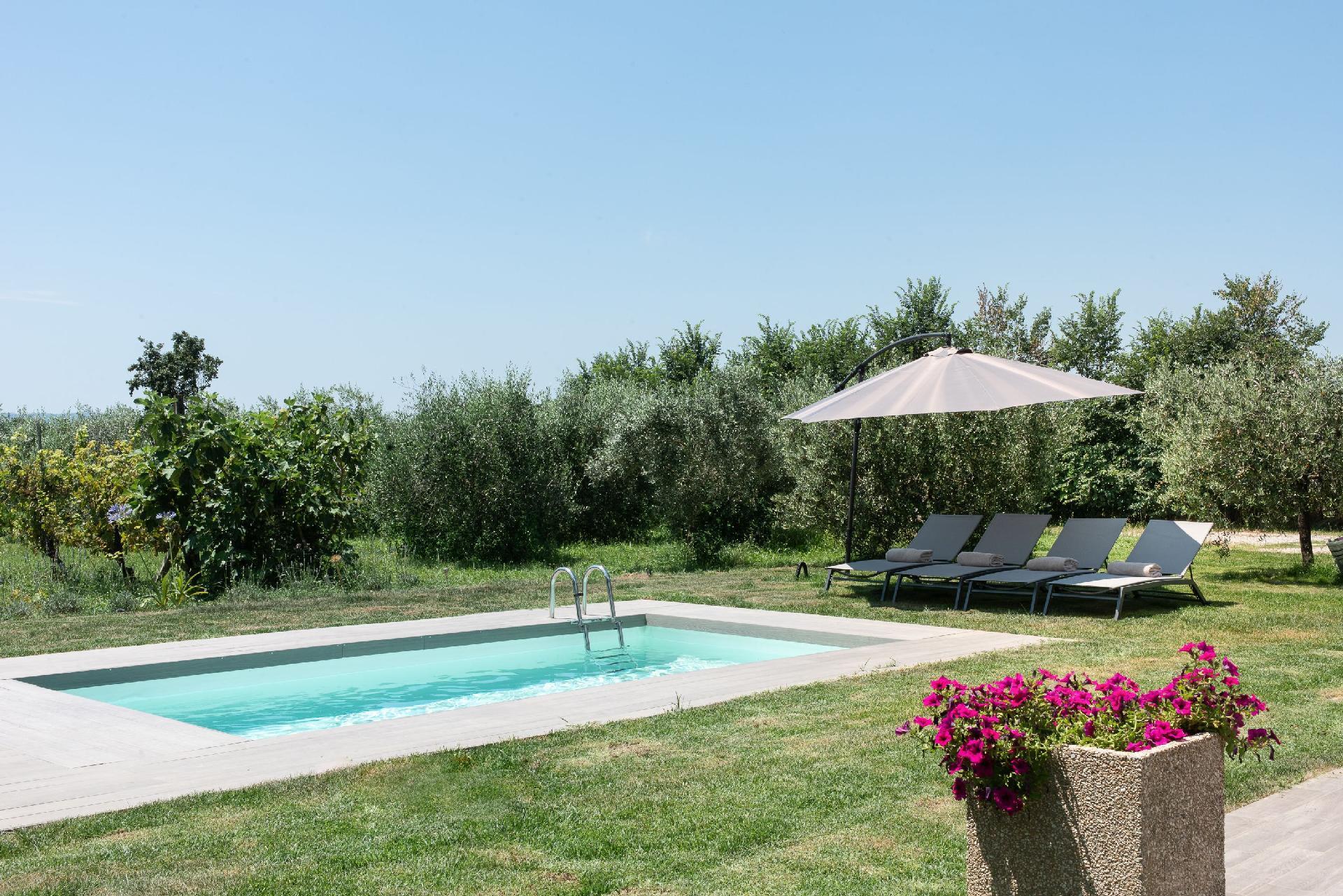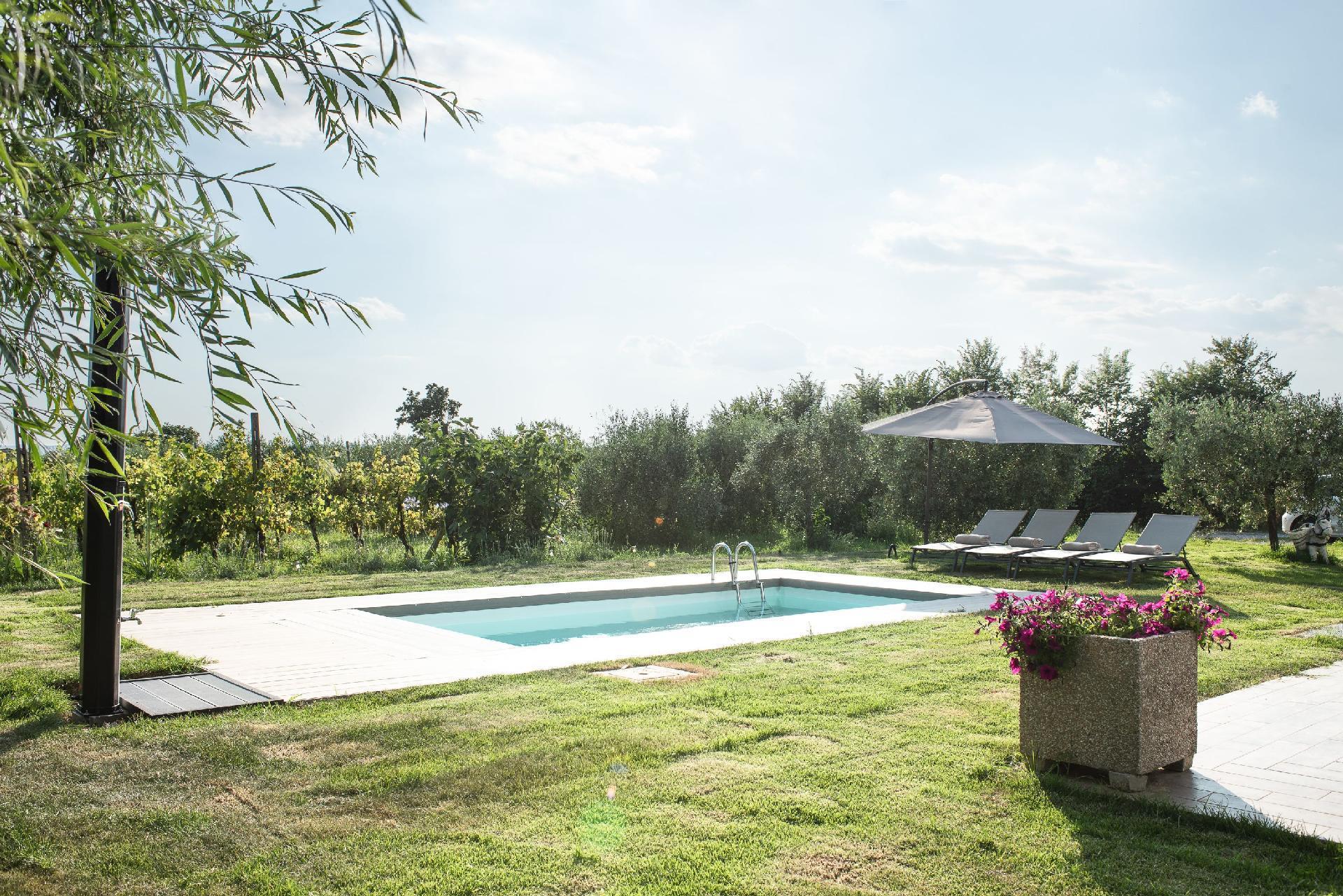 Im Außenbereich bietet die Villa eine herrliche Veranda, die zum Entspannen und zum Bewundern der umliegenden Landschaft einlädt, die von einem ausgedehnten Weinberg und einem Olivenhain geprägt ist. Der private Swimmingpool verspricht Erfrischung an heißen Tagen und bietet eine Oase der Ruhe und Privatsphäre. Dieser Raum unter freiem Himmel, der sich perfekt in die natürliche Umgebung einfügt, lädt die Gäste ein, das für die toskanische Landschaft typische Leben unter freiem Himmel zu erleben.