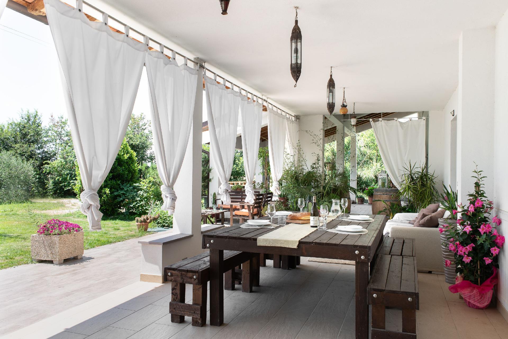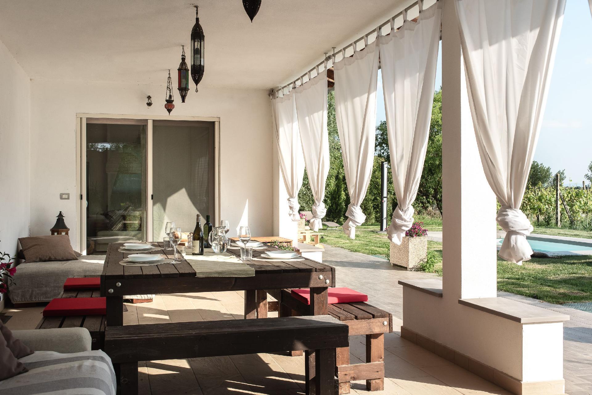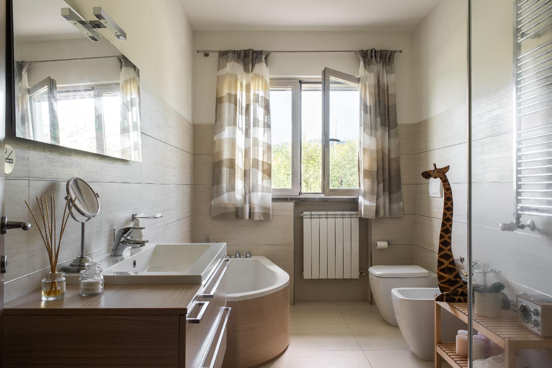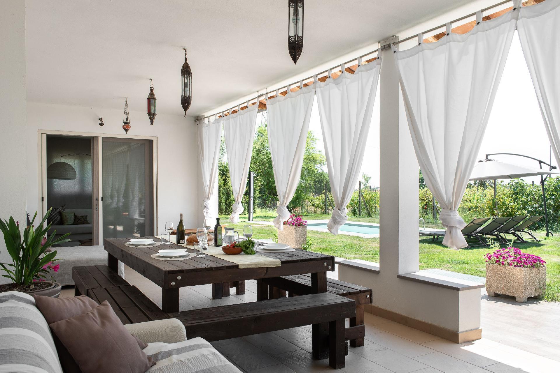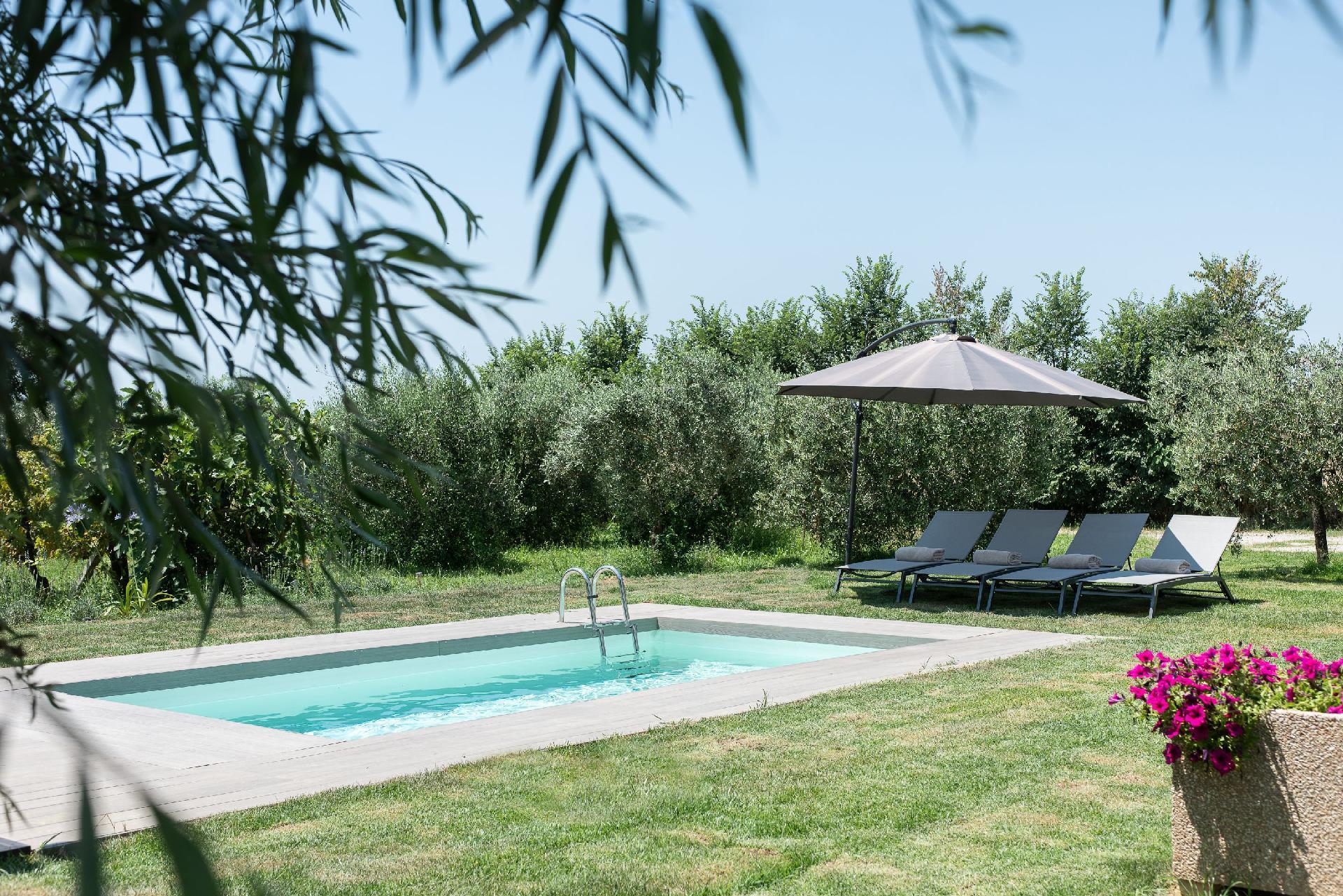 Im Außenbereich bietet die Villa eine herrliche Veranda, die zum Entspannen und zum Bewundern der umliegenden Landschaft einlädt, die von einem ausgedehnten Weinberg und einem Olivenhain geprägt ist. Der private Swimmingpool verspricht Erfrischung an heißen Tagen und bietet eine Oase der Ruhe und Privatsphäre. Dieser Raum unter freiem Himmel, der sich perfekt in die natürliche Umgebung einfügt, lädt die Gäste ein, das für die toskanische Landschaft typische Leben unter freiem Himmel zu erleben.