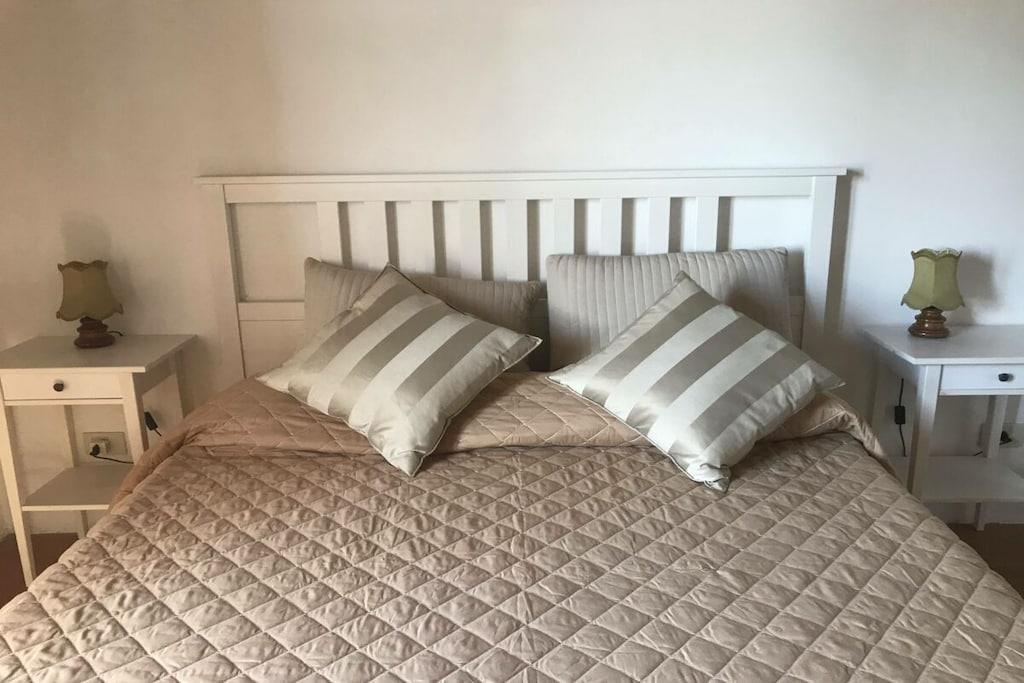 Parterre: (Wohnzimmer(Schlafcouch 1 Pers., TV, TV), Küche(, Esstisch, Toaster, Kochherd, Kaffeemaschine, Backofen, Mikrowelle, Spülmaschine, Kühlschrank, Tiefkühlschrank, Tiefkühlschrank), Badezimmer(, Toilette, Dusche, Waschbecken)) In der 1. Etage: (Schlafzimmer(, Doppelbett, Klimaanlage), Schlafzimmer(, , Einzelbett, Einzelbett, Klimaanlage), Schlafzimmer(, Doppelbett king size, Klimaanlage), Badezimmer(, Toilette, Badewanne, Dusche, Waschbecken, Waschbecken, Bidet)) , , , Internet, Internet, Waschmaschine, Terrasse, Parkplatz, Liegestühle(Liegen), Bügeleisen