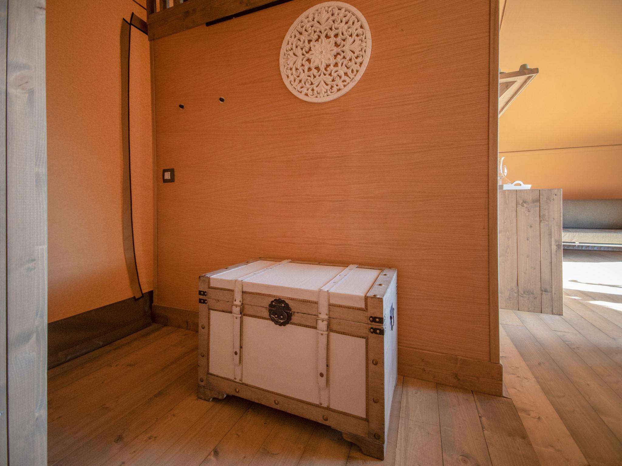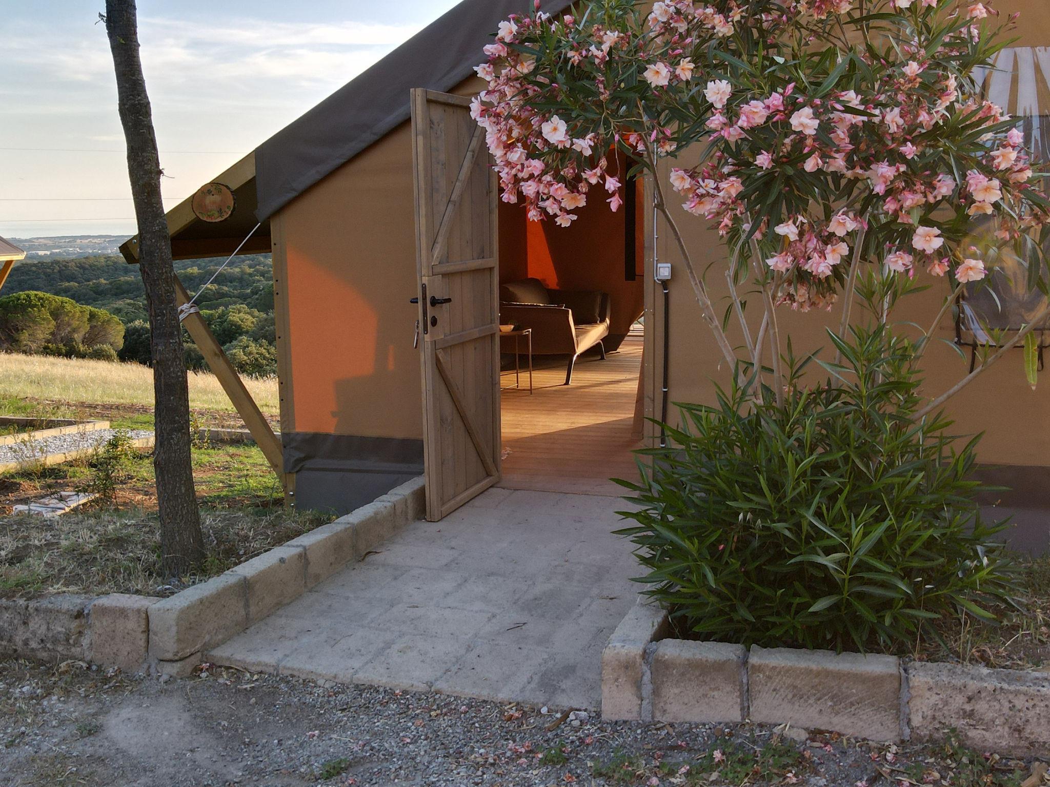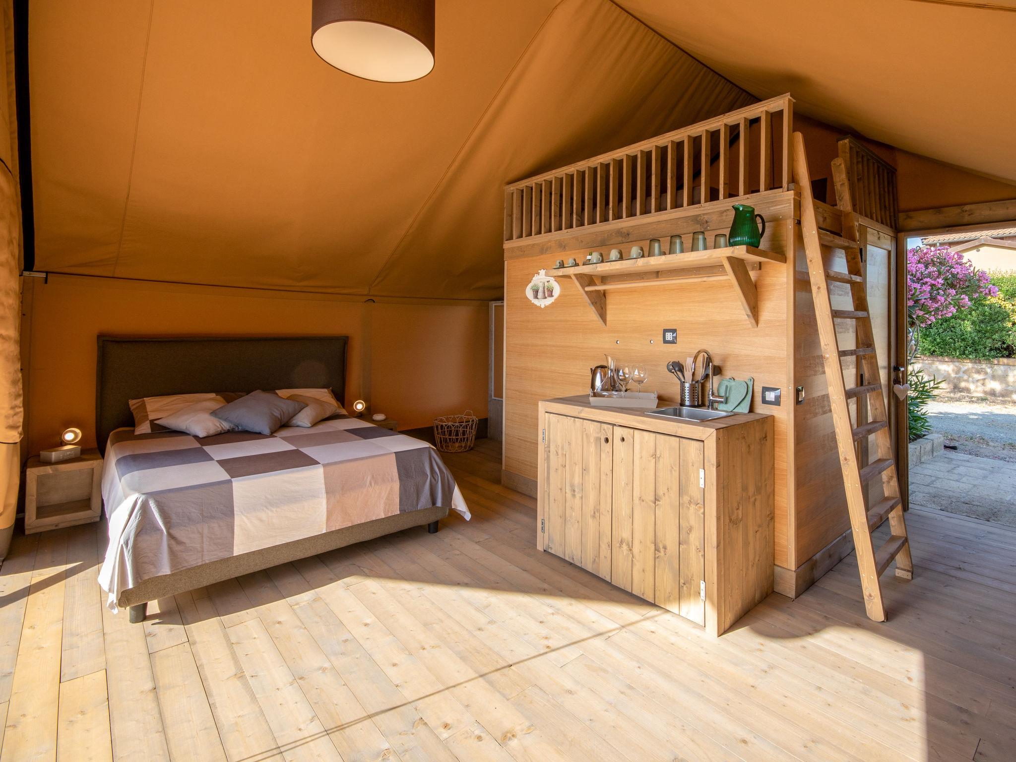 "Glampingtent Venere", 1-Zimmer-Mobilheim 32 m2, im erhöhten Erdgeschoss. Modern und gemütlich eingerichtet: offenes Wohn-/Schlafzimmer mit 1 Doppeldiwanbett und 1 Doppelbett. Ausgang zur Veranda. Offene Galerie mit 1 franz. Bett. Offene Küche (4 Glaskeramikplatten, Wasserkocher, elektrische Kaffeemaschine). Dusche/Bidet/WC. E-Heizung, Klimaanlage. Terrasse 16 m2, überdacht. Terrassenmöbel. Sehr schöne Panoramasicht auf das Meer und die Landschaft. Zur Verfügung: Haartrockner. Bitte beachten: Maximal 1 Haustier/Hund erlaubt. Eigener Eingang. IT050030B5LGYNK79U