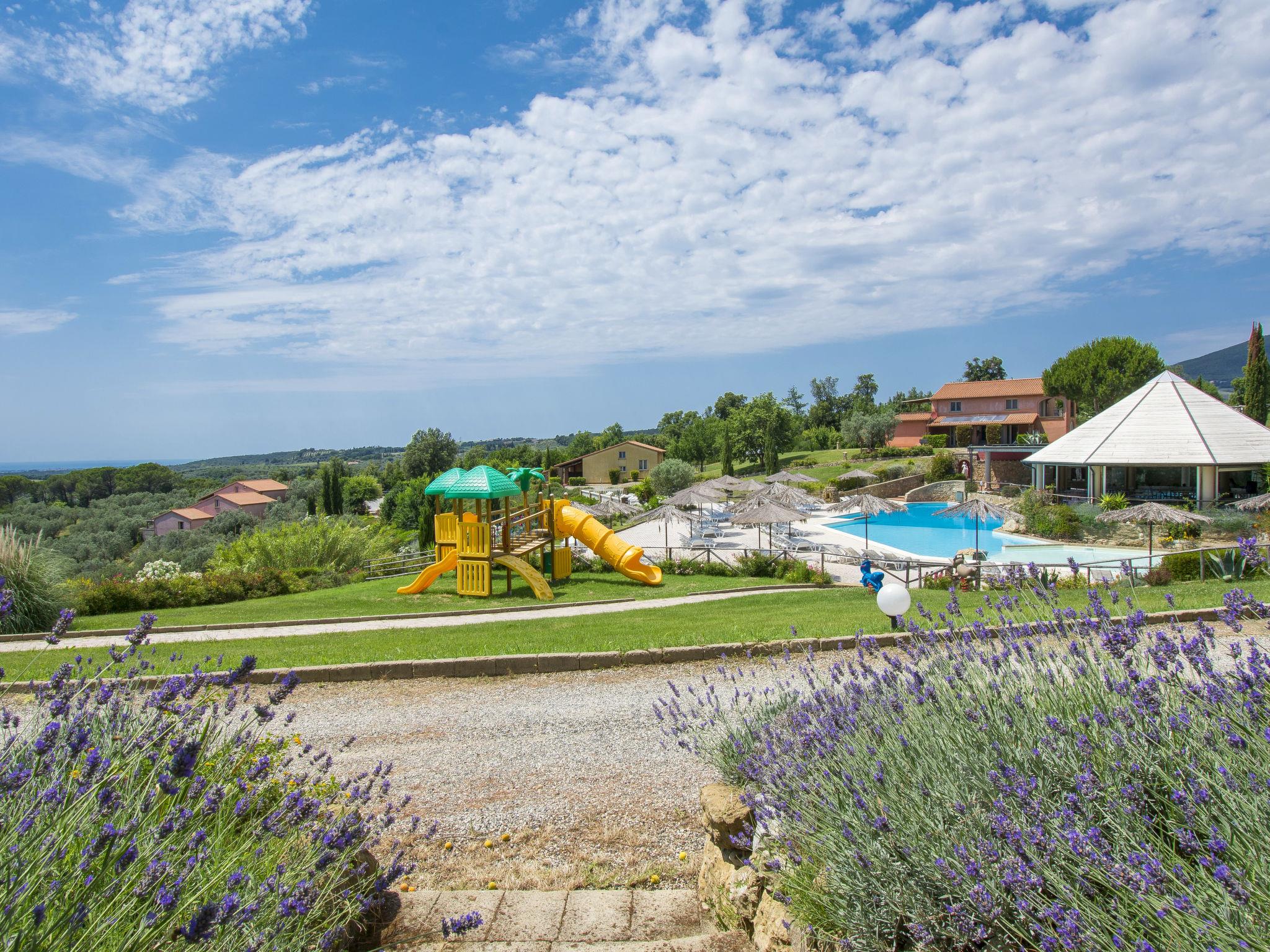 In erhöhter Lage mit sehr schöner Sicht auf das Meer und die umliegenden Hügel. Kinderfreundliche Ferienanlage "Il Felciaione", umgeben von Bäumen, Wiesen und Feldern. 8 Häuser im Ferienresort. 55 Wohnungen in der Residenz. 3.5 km vom Zentrum von Riparbella, sonnige Lage am Hang, 100 m vom Waldrand, 10 km vom Meer, 10 km vom Strand, im Grünen. Zur Mitbenutzung: Grundstück 350'000 m2 mit Pflanzen und Bäumen, Wiese, Schwimmbad (40 - 140 cm tief, saisonale Verfügbarkeit: 15.Mai. - 25.Sep.). Terrasse, Gartenmöbel, Kinderspielplatz. In der Anlage: Restaurant, Bar, Bistro, Wireless LAN, Waschmaschine (extra), Wäschetrockner (zur Mitbenutzung, extra), Fahrradverleih. Wäschewechsel (zusätzlich extra). Handtuchwechsel (zusätzlich extra). Brötchenservice. Parkplatz beim Haus. E-Ladestation. Einkaufsgeschäft 3.5 km, Supermarkt 10 km, Bushaltestelle "V. Del Commercio 2" 2.7 km, Sandstrand "Marina di Cecina" 10 km, Thermalbad "Calidario" 43 km. Nahe gelegene Sehenswürdigkeiten: Volterra 34 km, Pisa 66 km, Lucca 88 km, Firenze 120 km. Das Foto ist nur ein Wohnungsbeispiel. Badekappenpflicht.