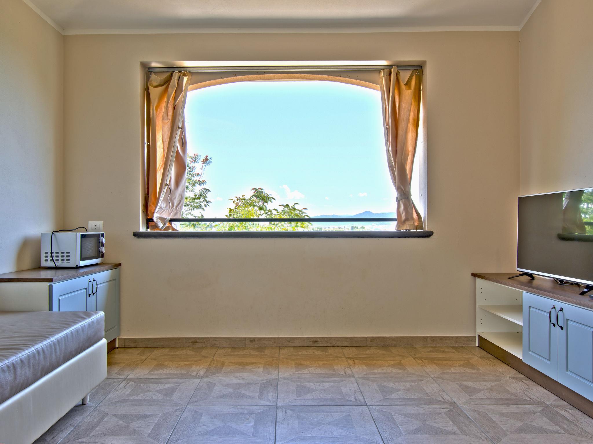 In erhöhter Lage mit sehr schöner Sicht auf das Meer und die umliegenden Hügel. Kinderfreundliche Ferienanlage "Il Felciaione", umgeben von Bäumen, Wiesen und Feldern. 8 Häuser im Ferienresort. 55 Wohnungen in der Residenz. 3.5 km vom Zentrum von Riparbella, sonnige Lage am Hang, 100 m vom Waldrand, 10 km vom Meer, 10 km vom Strand, im Grünen. Zur Mitbenutzung: Grundstück 350'000 m2 mit Pflanzen und Bäumen, Wiese, Schwimmbad (40 - 140 cm tief, saisonale Verfügbarkeit: 15.Mai. - 25.Sep.). Terrasse, Gartenmöbel, Kinderspielplatz. In der Anlage: Restaurant, Bar, Bistro, Wireless LAN, Waschmaschine (extra), Wäschetrockner (zur Mitbenutzung, extra), Fahrradverleih. Wäschewechsel (zusätzlich extra). Handtuchwechsel (zusätzlich extra). Brötchenservice. Parkplatz beim Haus. E-Ladestation. Einkaufsgeschäft 3.5 km, Supermarkt 10 km, Bushaltestelle "V. Del Commercio 2" 2.7 km, Sandstrand "Marina di Cecina" 10 km, Thermalbad "Calidario" 43 km. Nahe gelegene Sehenswürdigkeiten: Volterra 34 km, Pisa 66 km, Lucca 88 km, Firenze 120 km. Das Foto ist nur ein Wohnungsbeispiel. Badekappenpflicht.