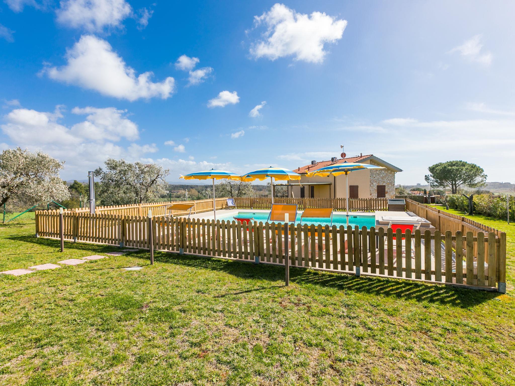 Sehr schönes Haus "Melograno", Baujahr 2020. 8.5 km vom Zentrum von Riparbella, 4 km vom Zentrum von San Pietro in Palazzi, 5 km vom Zentrum von Cecina, sonnige, erhöhte Lage, 8.5 km vom Meer, im Grünen. Zur Alleinbenutzung: Grundstück 4'000 m2 (eingezäunt), Garten Pflanzen und Bäumen, Wiese, Schwimmbad eingezäunt (8 x 5 m, 150 cm tief, saisonale Verfügbarkeit: 27.Mar. - 06.Nov.). Aussendusche, Sitzplatz, Terrasse (15 m2), Gartenmöbel, Grill, Kinderspielplatz, Poolpflege durch den Besitzer/Gärtner. 100 m lange Zufahrt (Naturweg). Parkplatz (für 2 Autos) auf dem Grundstück. Supermarkt 1.4 km, Einkaufszentrum 1.4 km, Restaurant 2 km, Bushaltestelle "Sp 68 - Bivio Loc. Giardino" 150 m, Bahnstation "San Pietro in Palazzi" 5.5 km, Sandstrand "Cecina Mare, Bagno Gabbiano" 8.5 km, Kieselstrand "Le Gorette" 7 km, Hallenbad 8.5 km, Thermalbad "Calidario" 38 km. Nahe gelegene Sehenswürdigkeiten: Pisa 52 km, Lucca 80 km, Firenze 112 km. EXTRA: Eine Sonnenliege, ein Liegestuhl und ein Sonnenschirm in der Badeanstalt Bagno Gabbiano in Marina di Cecina, 8,5 km entfernt, sind für die Kunden reserviert und im Preis inkludiert.