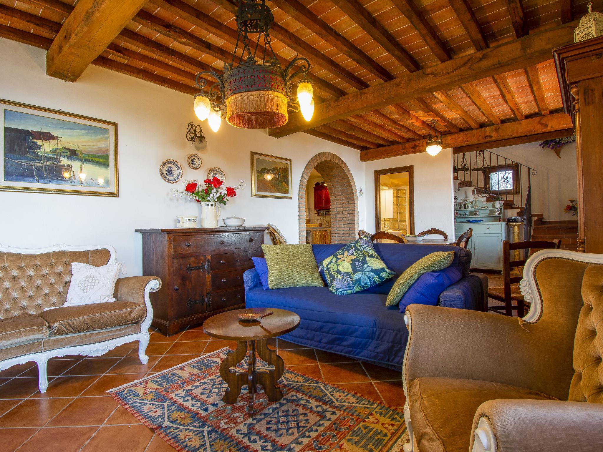 Grosses, schönes Landhaus "Bellavista", auf 2 Stockwerken, umgeben von Bäumen und Feldern. Ausserhalb des Ortes, 4.5 km vom Zentrum von Riparbella, alleinstehende Lage, 10 km vom Meer. Zur Alleinbenutzung: Grundstück 1'500 m2 (eingezäunt), Naturgarten. Wäschewechsel (zusätzlich extra). Handtuchwechsel (zusätzlich extra). 1.5 km lange Zufahrt (Naturweg). Parkplatz beim Haus. Einkaufsgeschäft 4.5 km, Lebensmittelgeschäft 4.5 km, Supermarkt 8 km, Restaurant 2 km, Bäckerei 4.5 km, Bushaltestelle "Srt68 Riparbella Bivio" 2.7 km, Sandstrand "Marina di Cecina" 10 km. Nahe gelegene Sehenswürdigkeiten: Volterra 30 km, San Gimignano 60 km, Pisa 60 km, Lucca 80 km, Firenze 115 km. Ein Teil des Hauses ist geschlossen und nicht bewohnt.