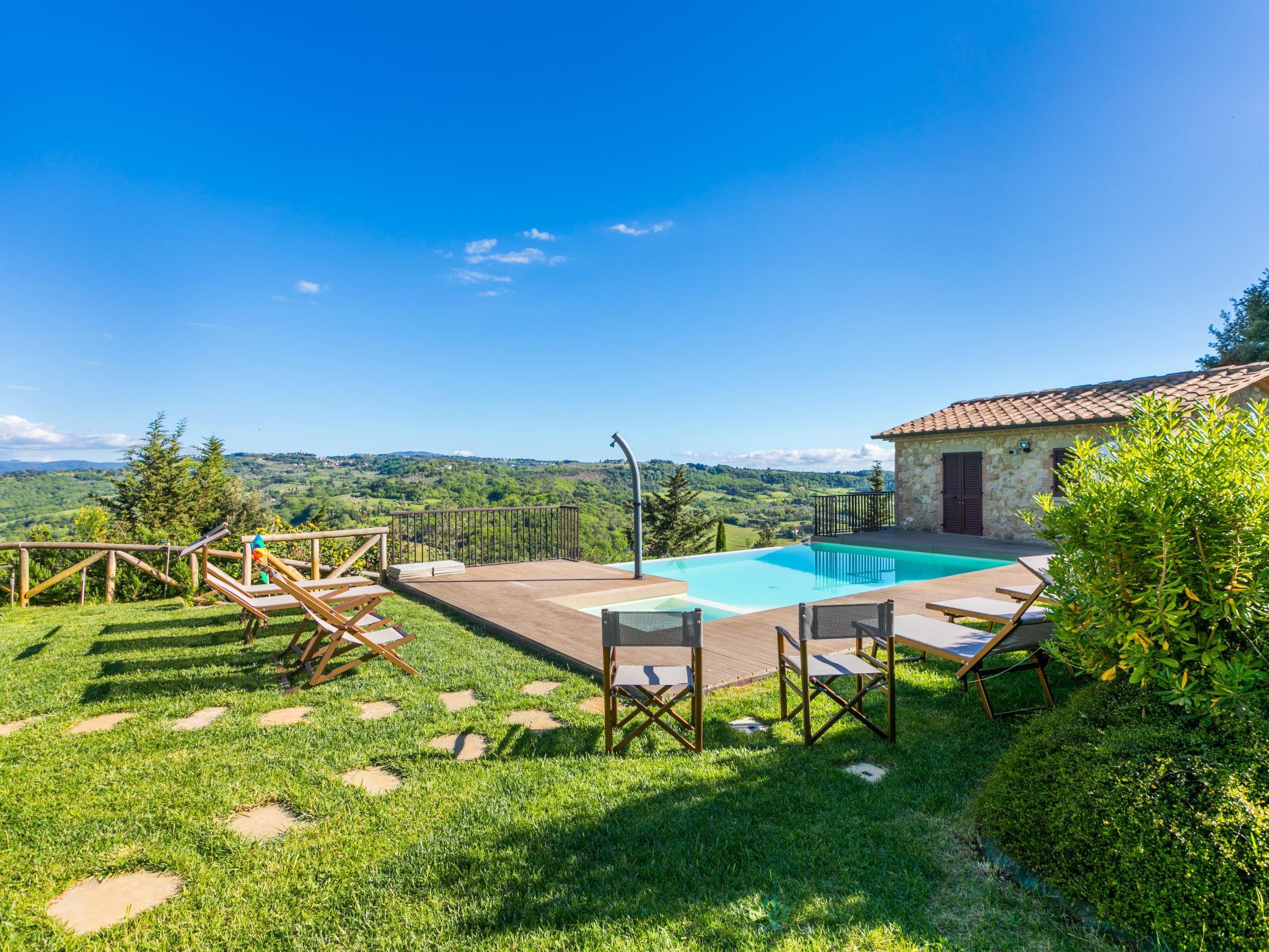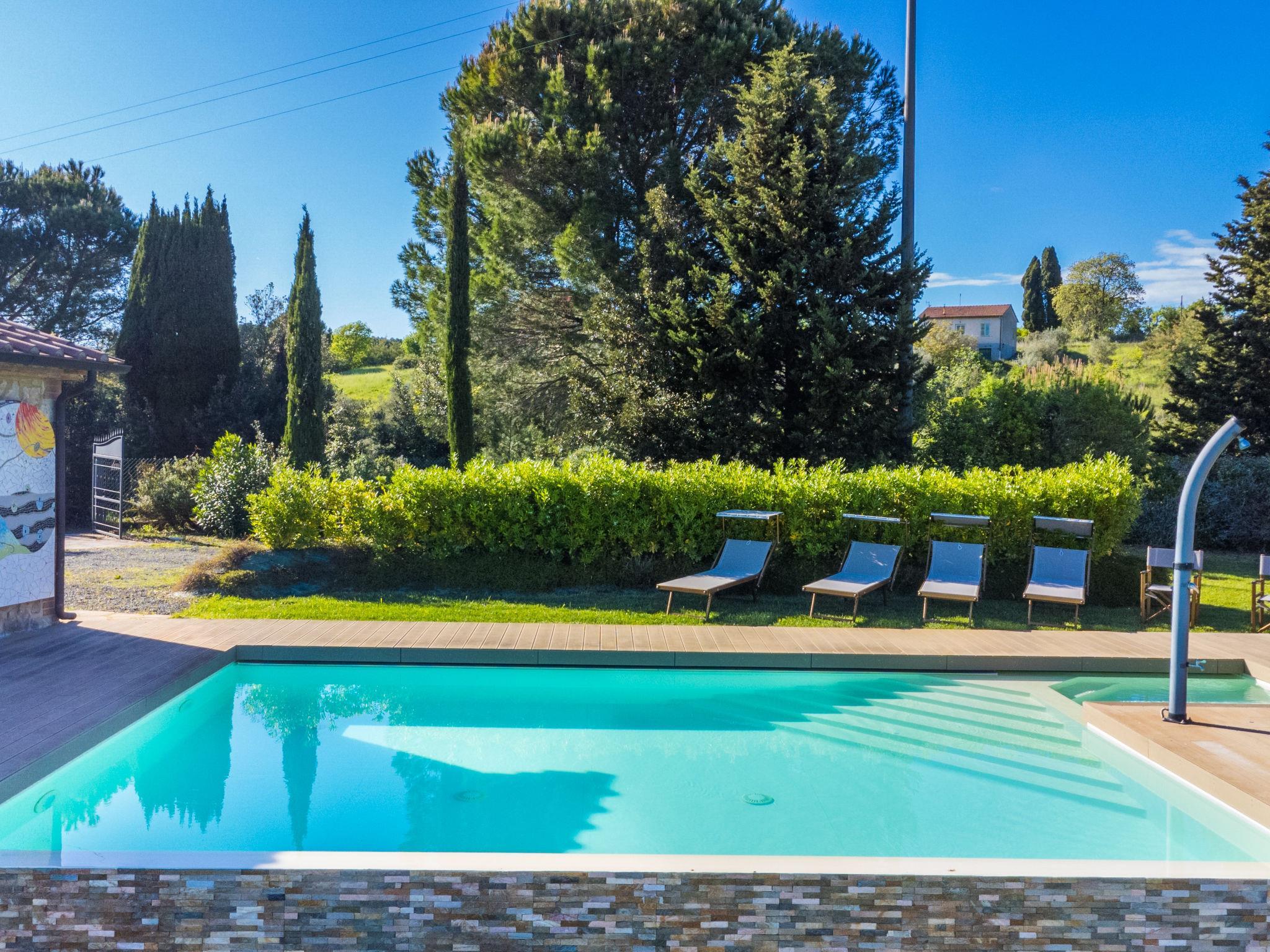Das komfortable Haus liegt in idyllischer Toskana Landschaft und der Blick reicht weit ins Cecina Tal bis hin zum Meer. Der schöne Pool macht das Angebot perfekt. Schönes, komfortables Einfamilienhaus "Lilia", auf 2 Stockwerken. 4 km vom Zentrum von Riparbella, ruhige, sonnige Lage, 15 km vom Meer, 15 km vom Strand. Zur Alleinbenutzung: Grundstück 1 ha (eingezäunt), Garten mit Rasen und Pflanzen, Liegewiese, Schwimmbad (4 x 8 m, 140 - 140 cm tief, saisonale Verfügbarkeit: 01.Mai. - 15.Okt.) mit Rollladenabdeckung. Aussendusche, Poolpflege durch den Besitzer/Gärtner. Wäschewechsel (zusätzlich extra). Handtuchwechsel (zusätzlich extra). Zufahrt (700 m Naturweg). Parkplatz (für 3 Autos, überdacht). E-Ladestation. Bushaltestelle 4 km. Der Besitzer akzeptiert keine Jugendgruppen.