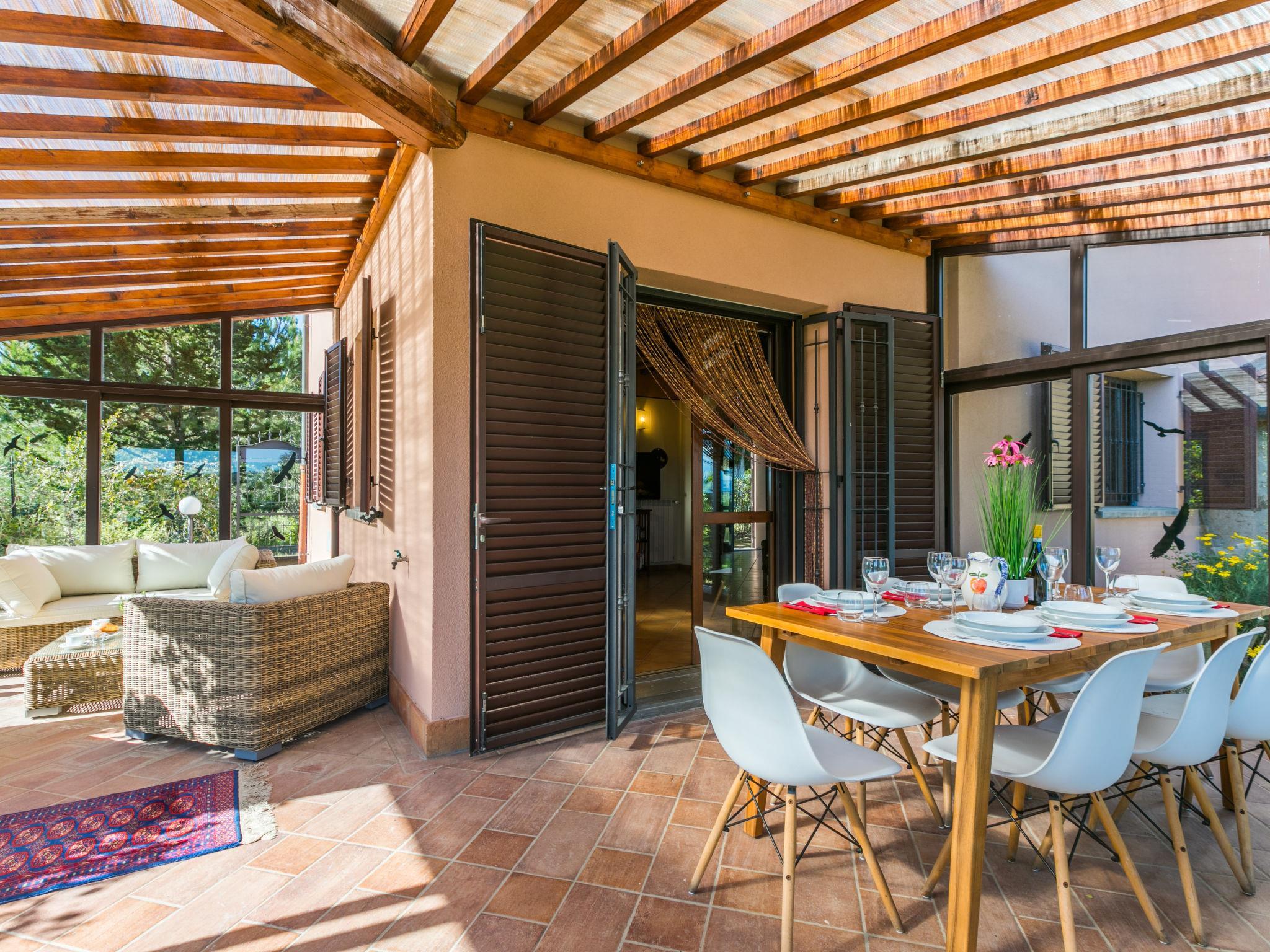 7-Zimmer-Haus 170 m2 auf 2 Stockwerken. Komfortabel und schön eingerichtet: gross mit Wintergarten mit Esstisch. Ausgang zum Garten. Wohnzimmer mit offenem Kamin. Ausgang zur Veranda. Wohn-/Schlafzimmer mit 1 Doppeldiwanbett, 1 Schlafmöglichkeit, Esstisch, Dusche/Bidet/WC und TV. Ausgang zur Veranda. 1 Zimmer mit 2 Betten. Offene Küche (Backofen, Geschirrspüler, Gasherd, 5 Flammen, Toaster, Wasserkocher, Mikrowelle) mit Esstisch. Ausgang zum Garten. Dusche/Bidet/WC. E-Heizung, G-Heizung, Klimaanlage. Obergeschoss: 1 Doppelzimmer. Ausgang zum Balkon. 1 Zimmer mit 2 Betten. 1 Zimmer mit 1 Bett und 1 Ausziehbett. Dusche/Bidet/WC. E-Heizung, G-Heizung, Klimaanlage. Komfortable Einrichtung im Landhausstil. Gartensitzplatz. Terrassenmöbel, Gartengrill, Liegestühle, Wintergarten, Abstellkammer. Panoramasicht auf das Tal und die Landschaft. Zur Verfügung: Waschmaschine, Fliegengitter, Kinderhochstuhl, Babybett bis 2 Jahre, Haartrockner. Internet (WLAN, gratis). Parkplatz (überdacht). E-Ladestation. Bitte beachten: eigener Eingang, Feuerlöscher. IT050030C2HPJAZDEO