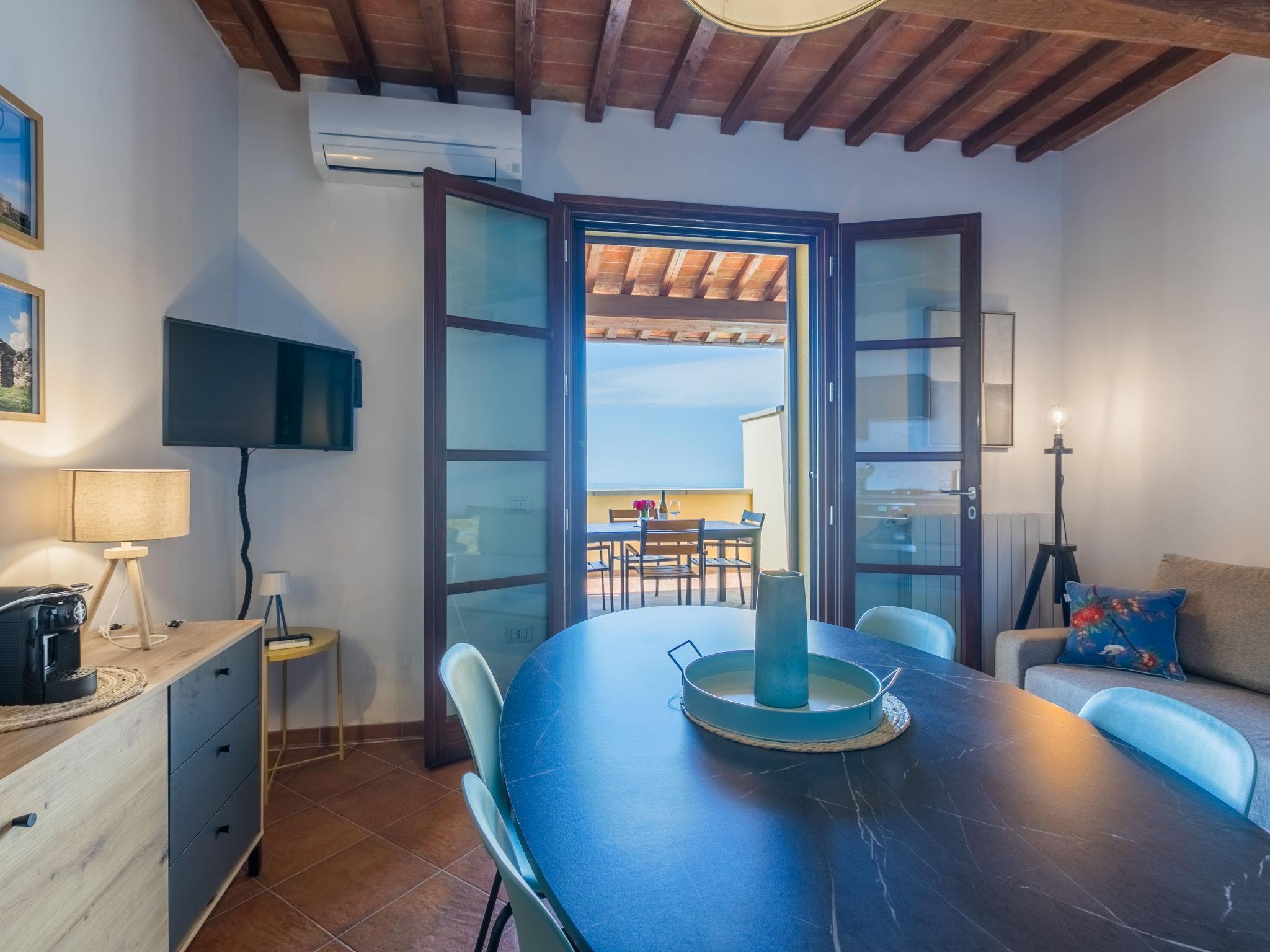 "La Casina di Riccardo", 2-Zimmer-Wohnung 50 m2, im Erdgeschoss. Schön und geschmackvoll eingerichtet: Wohn-/Schlafzimmer mit 1 Doppeldiwanbett und TV. Ausgang zur Terrasse. 1 Doppelzimmer. Offene Küche (Backofen, Geschirrspüler, 2 Induktionskochplatten, Gasherd, 2 Flammen, Toaster, Wasserkocher, elektrische Kaffeemaschine) mit Esstisch. Dusche/WC. E-Heizung, G-Heizung, Klimaanlage. Terrasse 16 m2 teilweise überdacht. Terrassenmöbel, Liegestühle. Herrliche Panoramasicht auf das Meer und die Landschaft. Zur Verfügung: Waschmaschine. Internet (Wireless LAN, gratis). Bitte beachten: eigener Eingang. IT050030C2SSXPTPPA