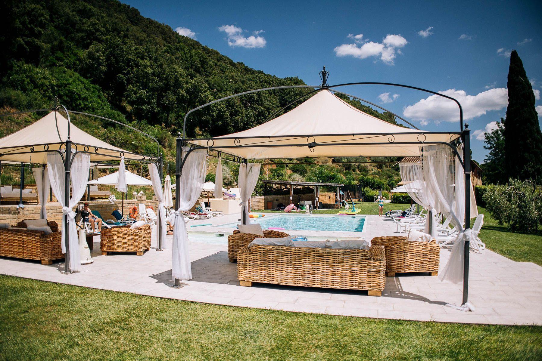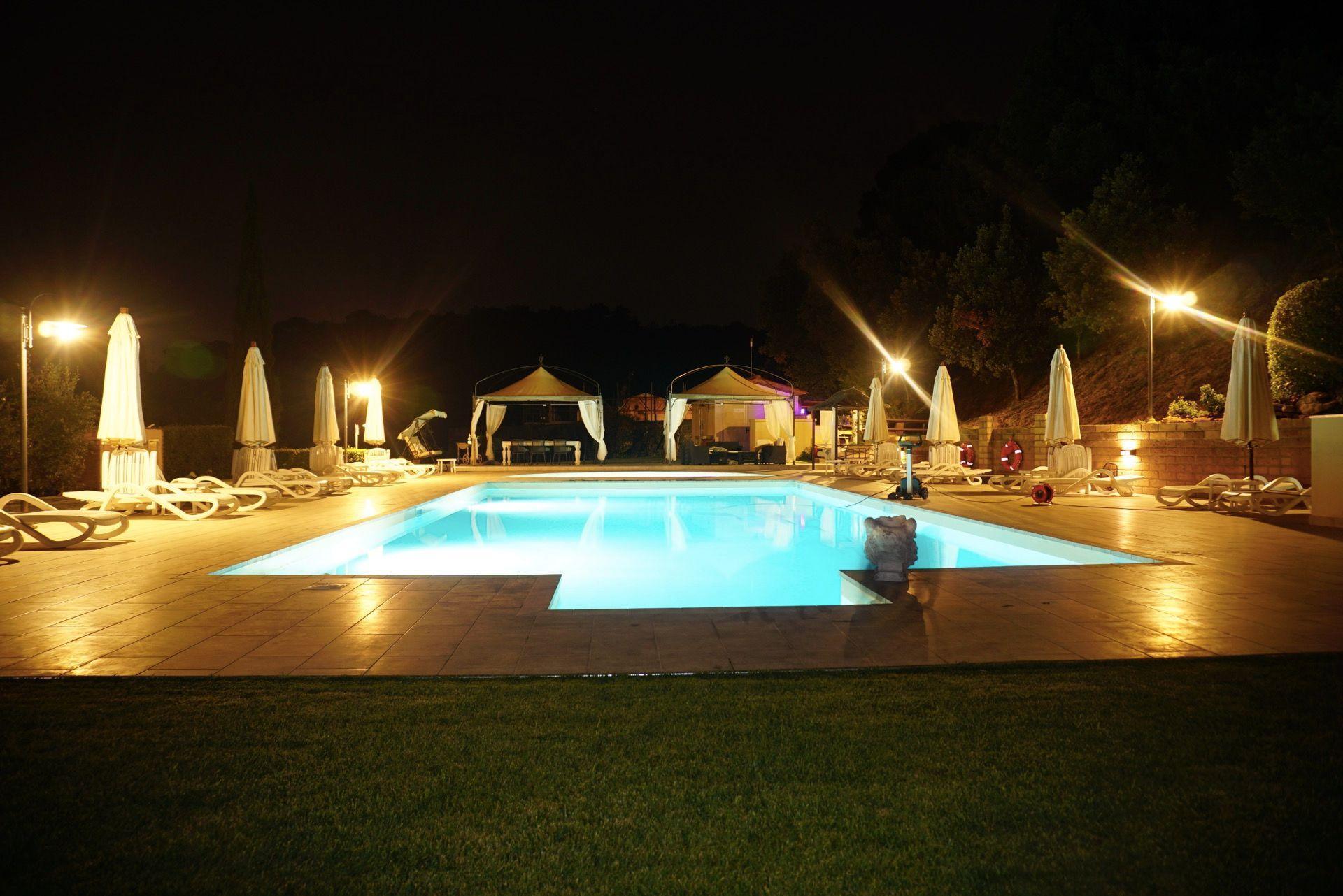 Pavillons, Tische, Stühle im Freien, Grill, verschiedene Spiele, Schwimmbad für Erwachsene 7x14 m tief 1,50 m Kinderbecken