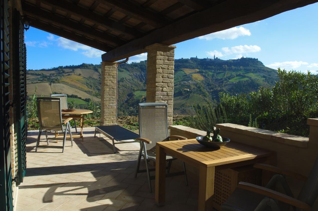 Alle Apartments haben eine luxuriöse Ausstattung und liegen ruhig oberhalb eines großen Weinrebenhanges. Der große Garten von ca. 6000 qm mit Oliven-, Feigen- und Obstbäumen steht den Gästen zur Verfügung, wie auch der Grillplatz mit “alpiner” Tisch/Sitzbank und Sitzbank im Olivenhain, beliebt als Früstückplatz mit traumhaftem Panorama-Blicken auf Ripatransone (480 m ü.M).