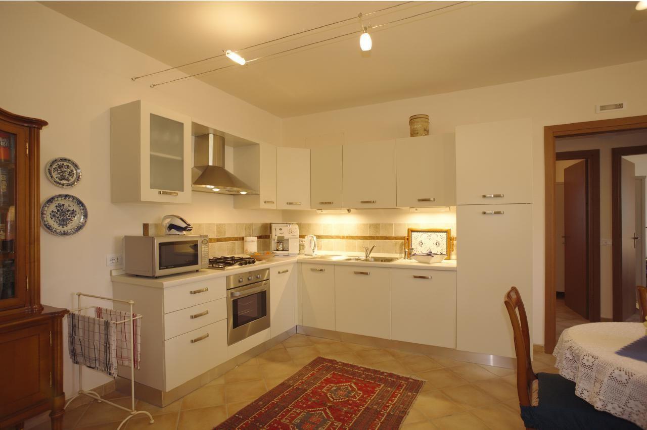 "Il Gufo" liegt im Souterrain mit Portico (überdachter Terasse) und eigener Liegewiese/Kräutergarten. Daneben liegt der Eingang zum Fitnessraum mit Crosstrainer, Hantelbank und Bauchtrainer, Sat-TV und Bibliothek sowie ein Waschraum mit Waschmaschine und Trockner, Bügelbrett und Bügeleisen. Bei allen Apartments sind Fenster und Terrassentüren mit Fliegengittern versehen.