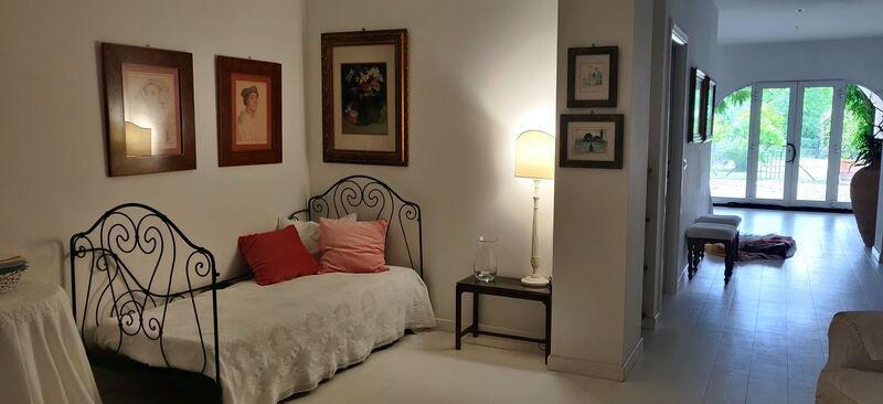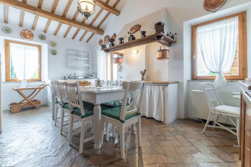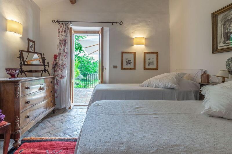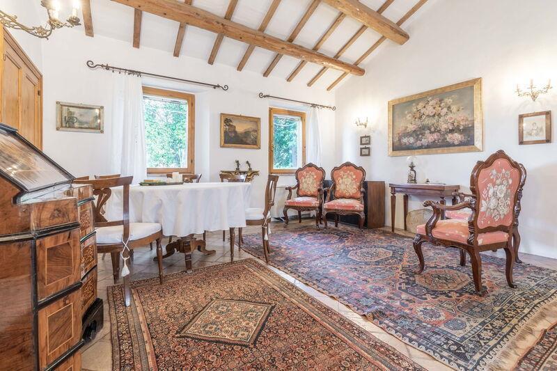 Villa La Picena erstreckt sich über zwei Etagen und verfügt über 2 Wohnzimmer, 2 Küchen, 2 große Terrassen, Veranda mit Lounge-Ecksofa, vier Doppel- und zwei Einzelzimmer, 4 Badezimmer, Fitnessraum und privates Schwimmbad mit HydromassageERDGESCHOSSIm Erdgeschoss befindet sich eine unabhängige Wohnung, die durch eine Fenstertür Zugang zur großen überdachten Terrasse mit Blick auf den Garten und den Pool hat. Unter der Veranda können Sie gemeinsam im Freien essen oder auf einem bequemen Lounge-Ecksofa entspannen.Durch die Veranda betreten Sie das Wohnzimmer, in dem sich eine Sitzecke und ein Esstisch befinden. Außerdem ist die Küche mit einem großen 5-Flammen-Edelstahlkochfeld mit Grillplatte und Fritteuse, separatem Backofen, Geschirrspüler, Kühlschrank mit Gefrierfach und Mikrowelle ausgestattet. Es gibt ein Schlafzimmer mit Doppelbett und einem kürzlich renovierten, modernen Badezimmer mit Waschbecken, großer Dusche und WC. Außerdem gibt es einen Zwischenraum, der als zusätzliches Einzelzimmer genutzt werden kann, Fitnessraum und einen separaten Raum mit Waschmaschine, Dusche und WC. Dieser Boden ist dank der weißen Wände und des hellen Bodens sehr angenehm.ERSTE STOCKDurch den Flur am Eingang betritt man den 1. Stock auf einem kleinen Absatz am oberen Ende der Treppe, wo sich links die 2. Küche der Villa befindet. Diese ist mit Herd und Backofen, Kühlschrank, Spülmaschine, Mikrowelle und Esstisch ausgestattet. Von dieser Küche hat man Zugang zu einer großen Terrasse mit herrlichem Blick auf die umliegende Landschaft und die Monti Sibillini. Es gibt einen Esstisch für 10 Personen und auf der Terrasse hängen Schattenspender. Von dieser Terrasse aus können Sie abends einen wunderschönen Sonnenuntergang hinter den Bergen genießen!Direkt vom Flur gibt es ein Doppelzimmer mit Doppelbett, das auch Zugang zur großen Terrasse 'Küche' hat. Weiterhin gibt es ein großes Wohnzimmer mit gemütlicher Sitzecke mit 2 Sofas und Sat-TV. Von diesem Wohnzimmer betritt man den Schlafbereich; ein schönes Studio mit einem Einzelschlafsofa und einer riesigen Sammlung alter Krüge, ein Schlafzimmer mit einem Einzelbett, ein separates Badezimmer mit Waschbecken, Dusche und WC, ein Schlafzimmer mit Doppelbett und eigenem Badezimmer mit Waschbecken, Badezimmer mit Dusche und WC und ein Schlafzimmer mit zwei Einzelbetten. Dieses letzte Schlafzimmer bietet durch französische Fenster Zugang zu einer großen Terrasse. Von dieser Terrasse haben Sie einen Blick auf den Swimmingpool und eine schöne Aussicht auf die umliegende Hügellandschaft. Diese Terrasse ist auch mit einem Esstisch ausgestattet und mit Beschattung bedeckt. Die gesamte erste Etage ist sehr schön und geräumig, da alle Zimmer zum Dach mit Holzbalken ausgerichtet sind.REINIGUNG UND DESINFEKTIONProfessionelle Reinigung und Desinfektion werden zu Beginn und am Ende des Aufenthalts durchgeführtINTERNETWLAN im gesamten Hotel verfügbarKLIMAANLAGE UND HEIZUNGKlimaanlage vorhandenAutonomes HeizenKINDERKinder sind willkommenBARRIEREFREIHEIT'Die Villa ist nicht für Personen mit eingeschränkter oder vollständiger Mobilität geeignetAUSSICHTDer Blick ist auf das umliegende Tal bei 360 GradLÄRMDie Türen und Fenster sind von guter Qualität und das Haus ist von viel Grün umgeben, so dass Sie mit Sicherheit gut schlafen werdenTIEREHaustiere auf Anfrage erlaubt2 AUFENTHALTE2 VOLLE KÜCHEN4 VOLLE BADEZIMMER