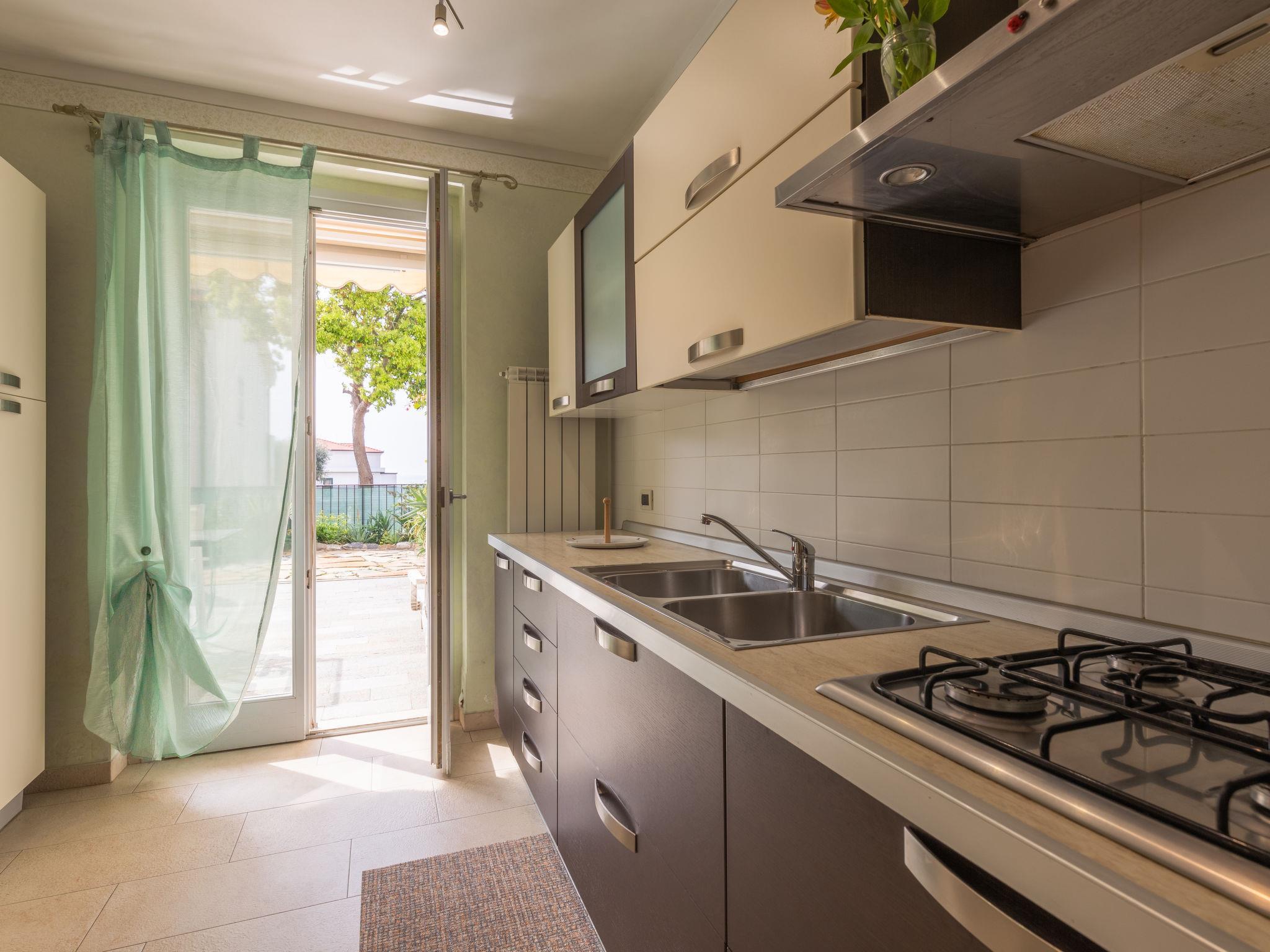 "Cristina (RLI115)", 3-Zimmer-Wohnung 75 m2, im Erdgeschoss. Wohn-/Schlafzimmer mit 1 Ausziehbett (2 Pers. 2 x 80 cm), TV. Ausgang zur Terrasse. 1 Zimmer mit 1 Doppelbett (180 cm). Ausgang zur Terrasse. 1 Zimmer mit 1 Diwanbett (160 cm, Länge 200 cm). Ausgang zur Terrasse. Offene Küche (Backofen, 4 Flammen, Toaster, Wasserkocher, Tiefkühler, elektrische Kaffeemaschine) mit Esstisch. Ausgang zur Terrasse. Dusche/WC, Doppelwaschbecken. G-Heizung. Heizung nur verfügbar von 15.10. bis 30.04. 2 Terrassen teilweise überdacht. Terrassenmöbel, Liegestühle (2). Sicht auf das Meer. Zur Verfügung: Waschmaschine, Bügeleisen, Kinderhochstuhl, Babybett. Internet (Wireless LAN, extra). Garage. Maximal 2 Haustiere/Hunde erlaubt. IT008050C243O9LPH9