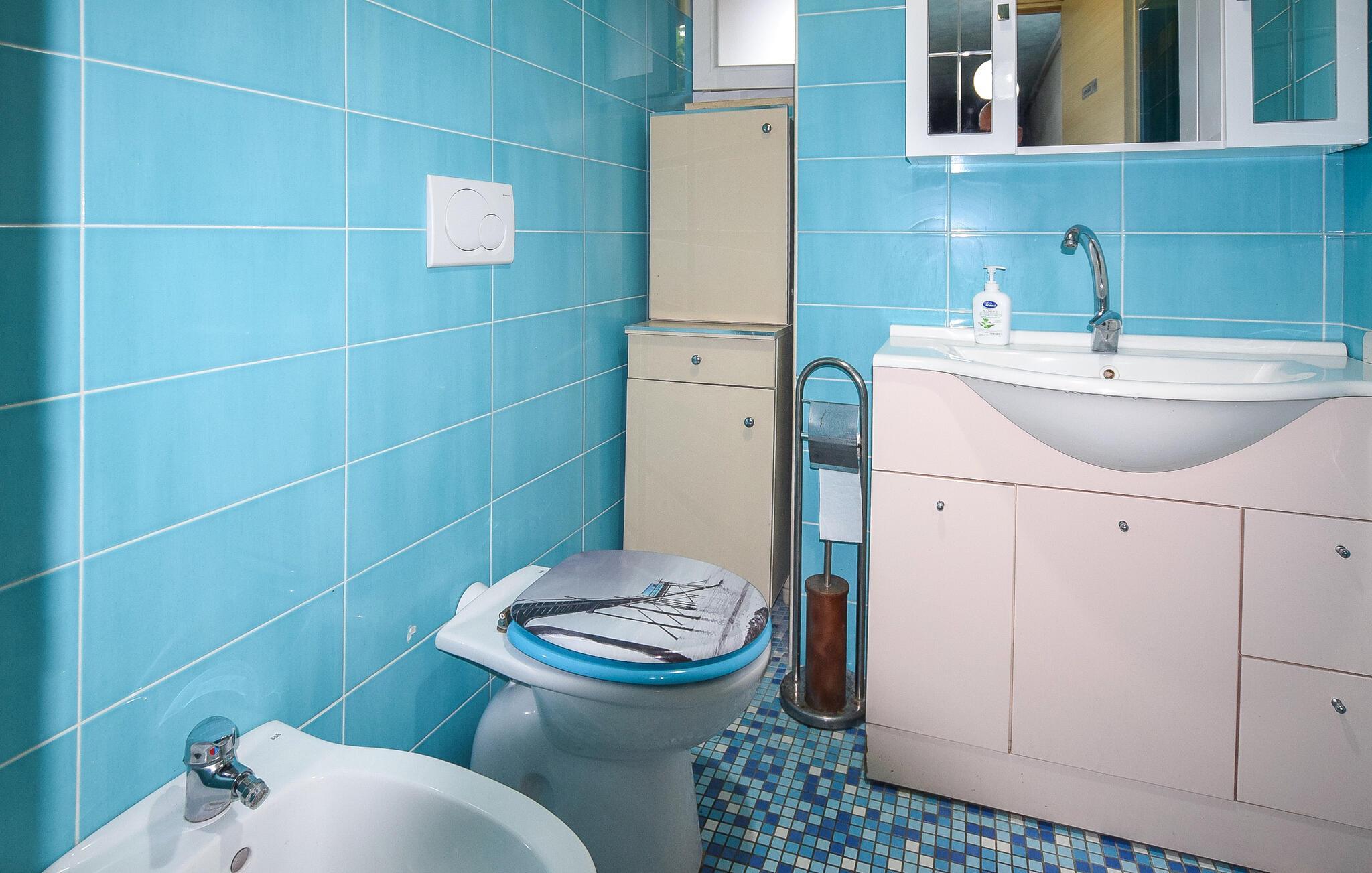 Badezimmer 10m2 (nr. 2) - WC. Warmes und kaltes Wasser. Handdusche