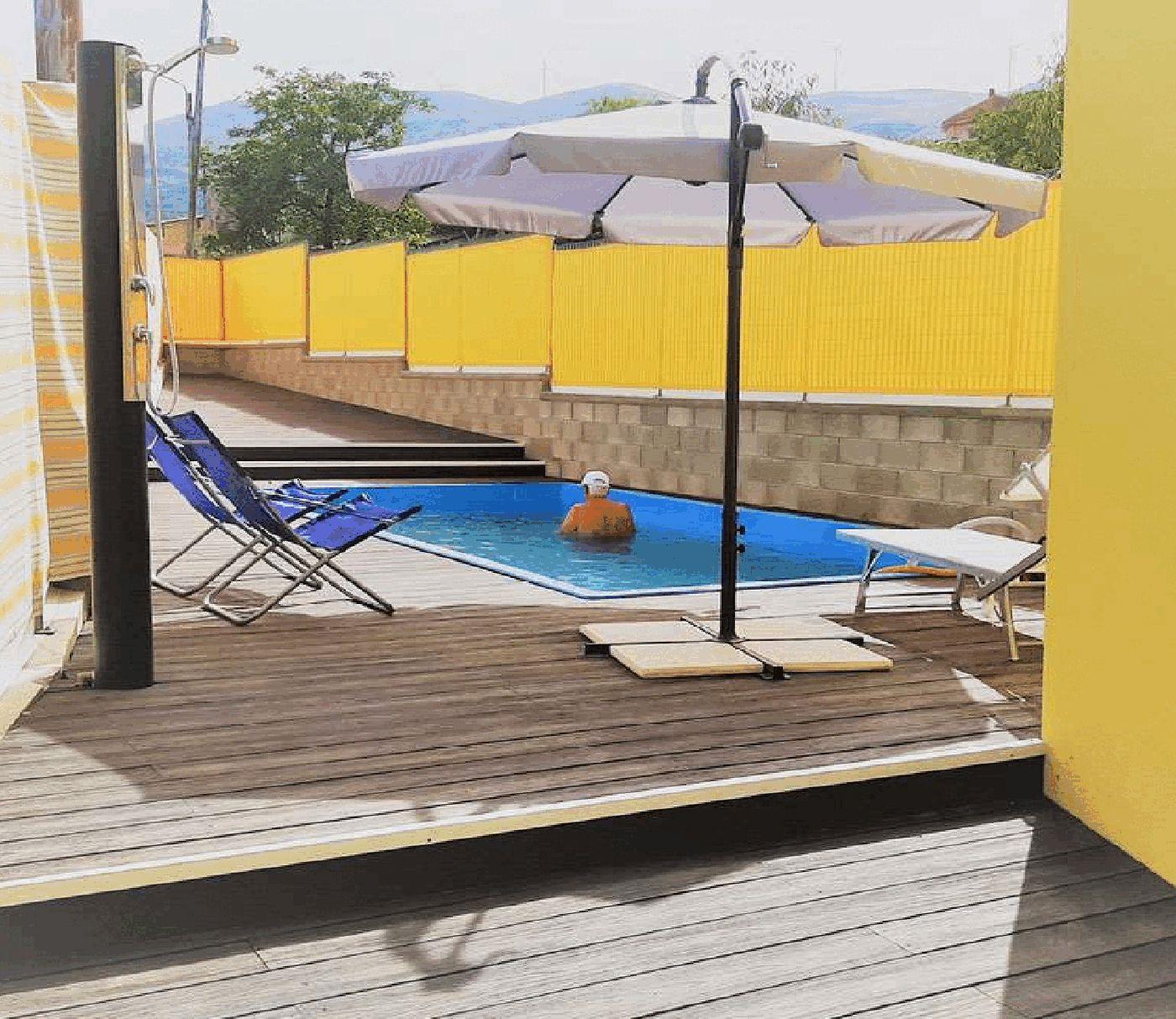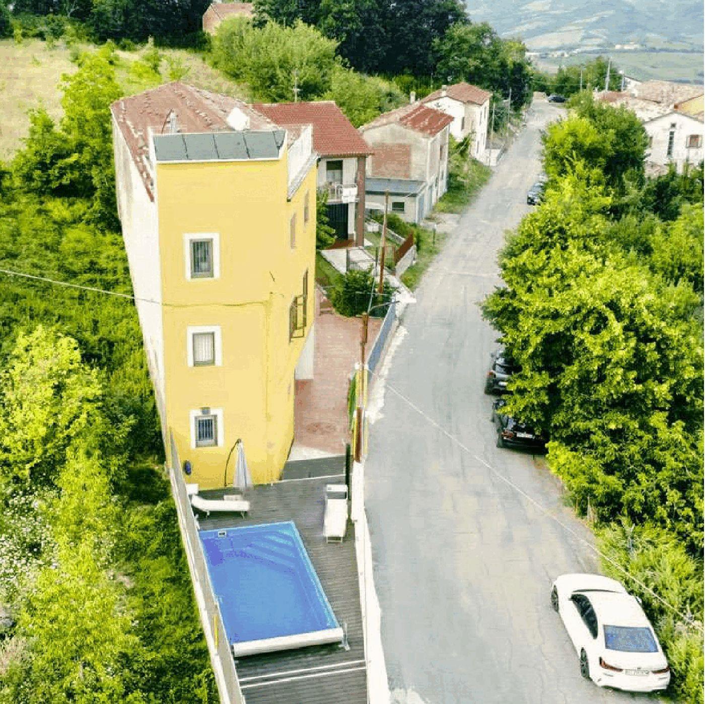 Im Außenbereich befindet sich ein Schwimmbad zur gemeinsamen Nutzung, ideal für eine Abkühlung an heißen Tagen oder einfach nur für Momente der Entspannung unter der Sonne der Abruzzen. Das Haus, das auf vier Seiten unabhängig und frei ist, garantiert absolute Privatsphäre und Ruhe, so dass die Gäste ihren Aufenthalt in ihrem eigenen Tempo und in Harmonie mit ihrer Umgebung verbringen können.