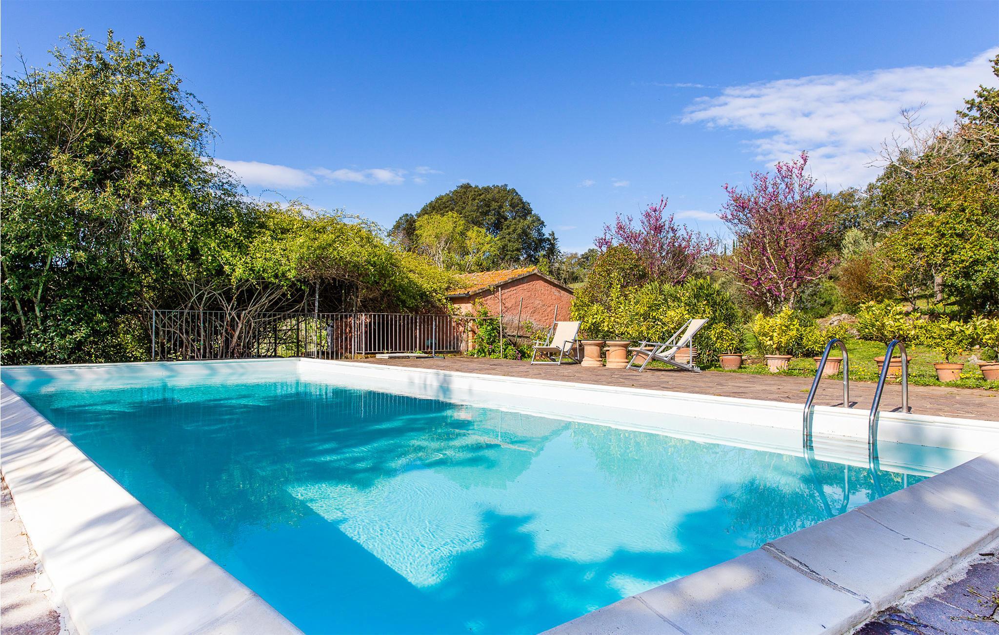 Ein weitläufiger Park mit Rasen, Olivenhain und Korkeichen umgibt das Haus. Außerdem gibt es hier einige hundert Rosenstöcke verschiedener Arten, die den Park während der Blütezeit im Mai in einen wunderschönen Rosengarten verwandeln. Erfrischen Sie sich nach Belieben im schönen Swimmingpool und entspannen Sie in großen möblierten Außenbereichen mit einem mobilen Gasgrill. Das Hauseigentümerpaar, welches das Anwesen bewirtschaftet, wohnt in einem separaten und unabhängigen Gebäude.