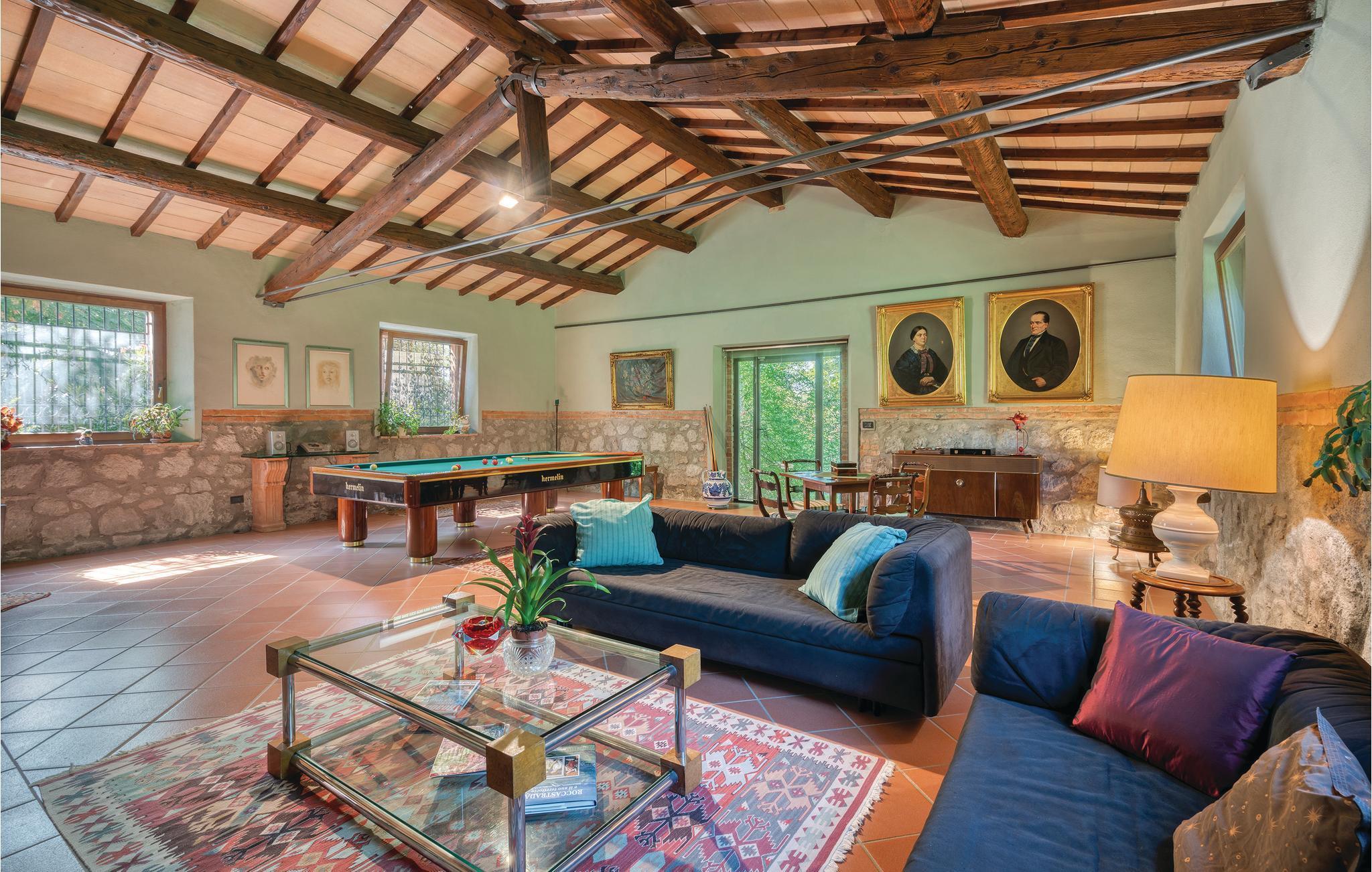 Dieses schöne zweistöckige Landhaus empfängt Sie nicht weit vom Dorf Roccastrada entfernt inmitten der pittoresken Landschaft der Toskana. Die gemütlichen Räume bezaubern mit einer authentischen Einrichtung und mediterranen Farben. Machen Sie es sich gemeinsam im Wohnzimmer gemütlich, feuern Sie im Kamin an, der eine behagliche Atmosphäre schafft, oder fordern Sie Ihre Mitreisenden zu einer Partie Billard heraus.