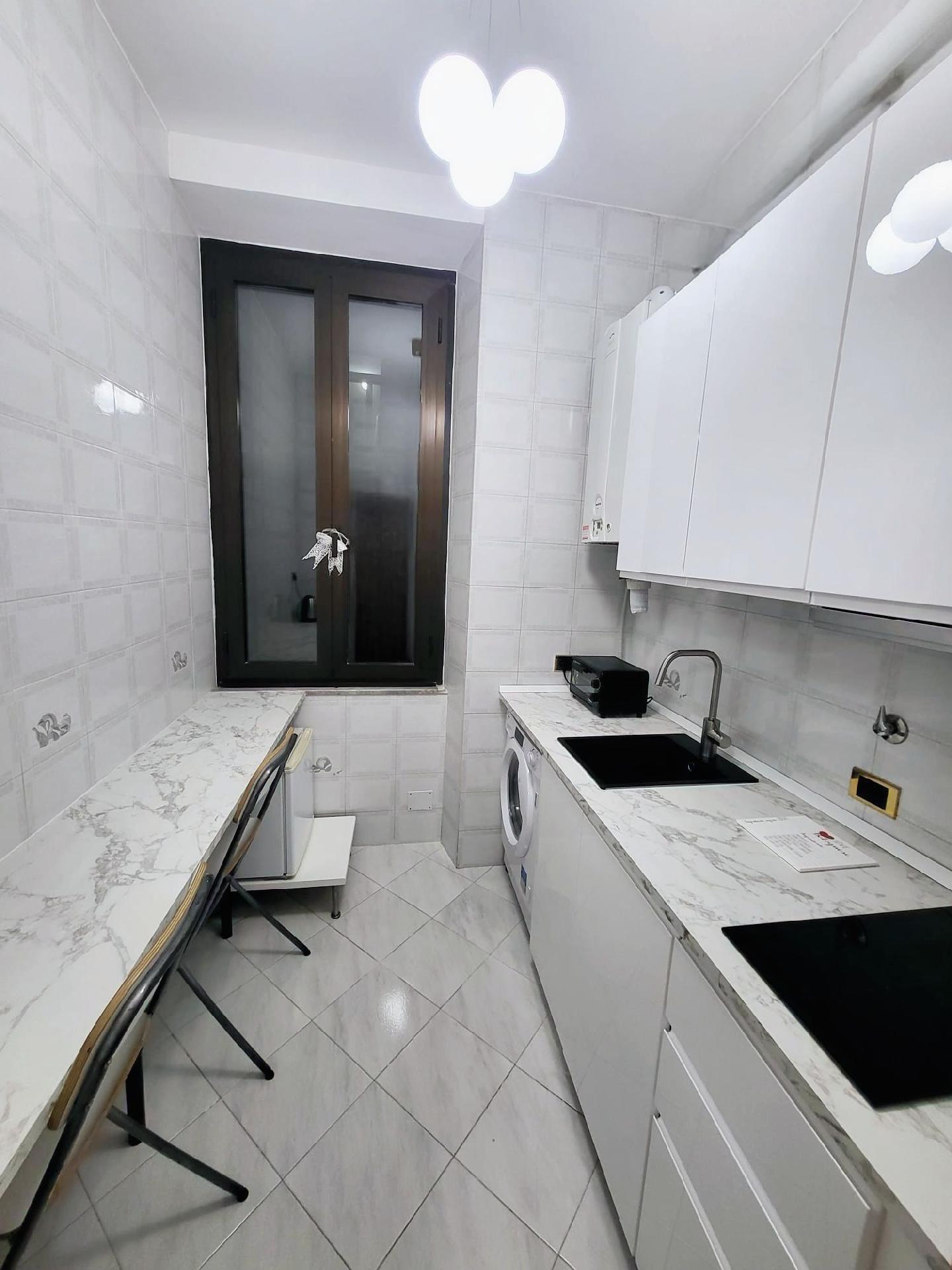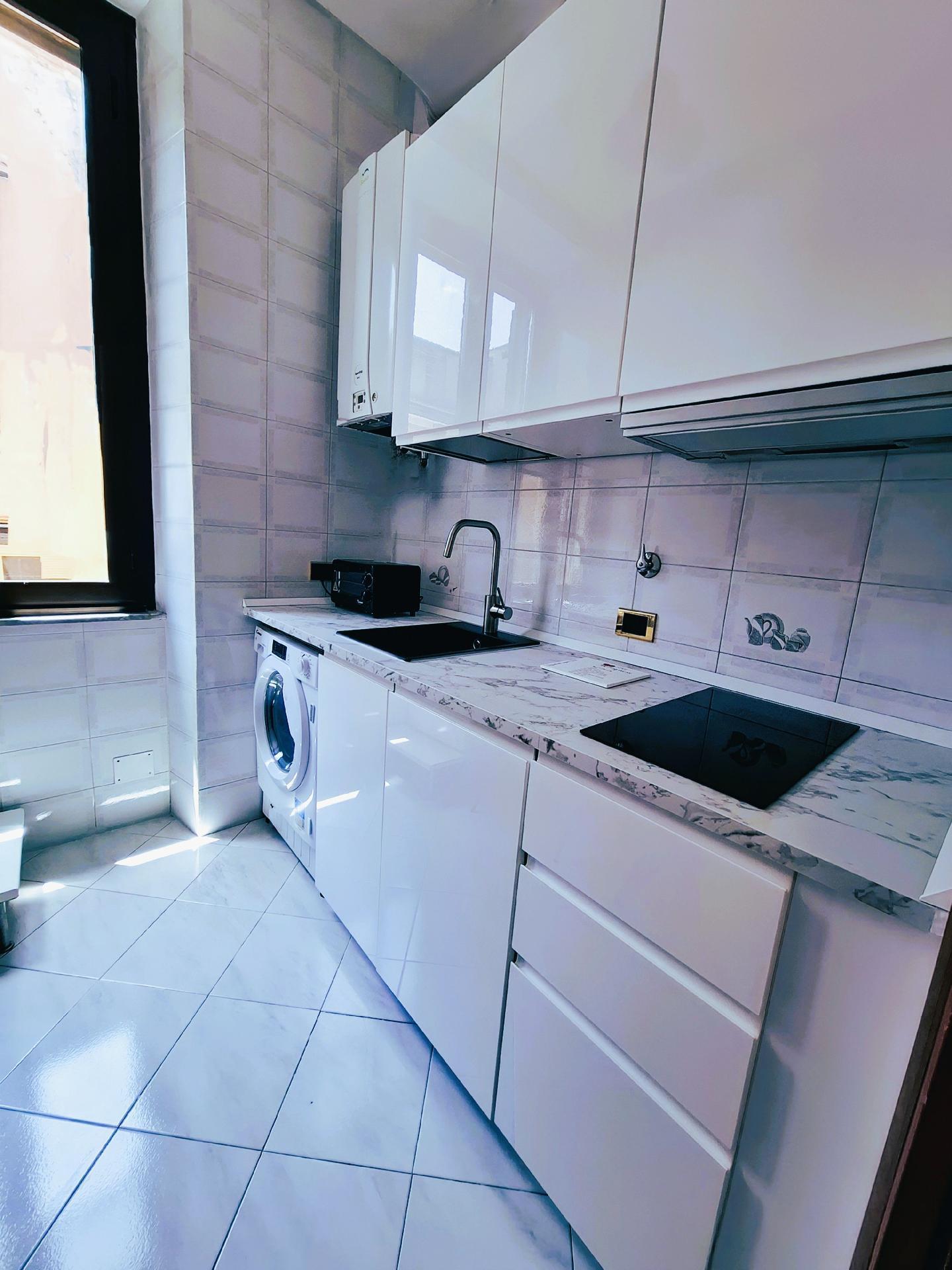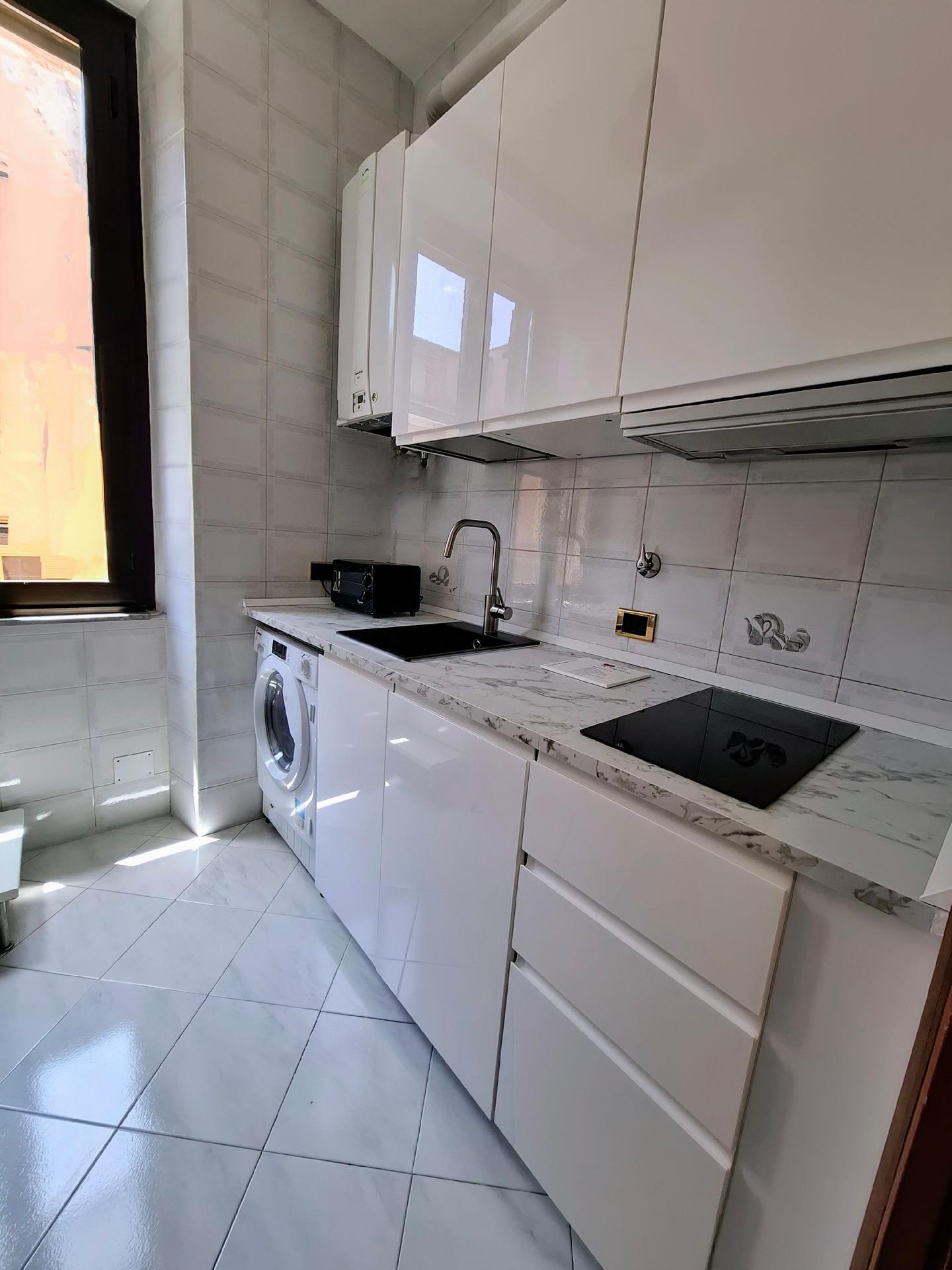 Im Inneren finden Sie eine klimatisierte Umgebung, die maximalen Komfort während der heißen und kalten Monate garantiert. Die Wohnung verfügt über eine Waschmaschine, die Sie exklusiv nutzen können, damit Sie bei längeren Aufenthalten immer saubere Wäsche zur Hand haben. Die Küche ist mit einem Induktionsherd mit zwei Kochstellen, einer Mokkakaffeemaschine, einem Geschirrspüler, einem Minibackofen und einer Minibar ausgestattet und bietet Ihnen alles, was Sie brauchen, um köstliche Mahlzeiten zuzubereiten, als wären Sie zu Hause.