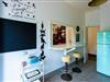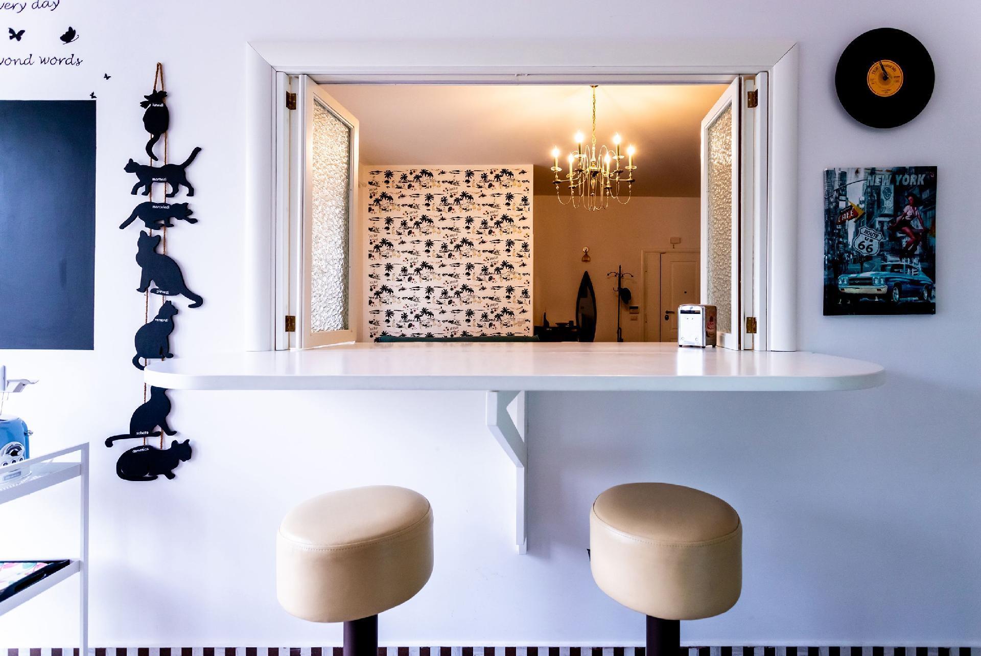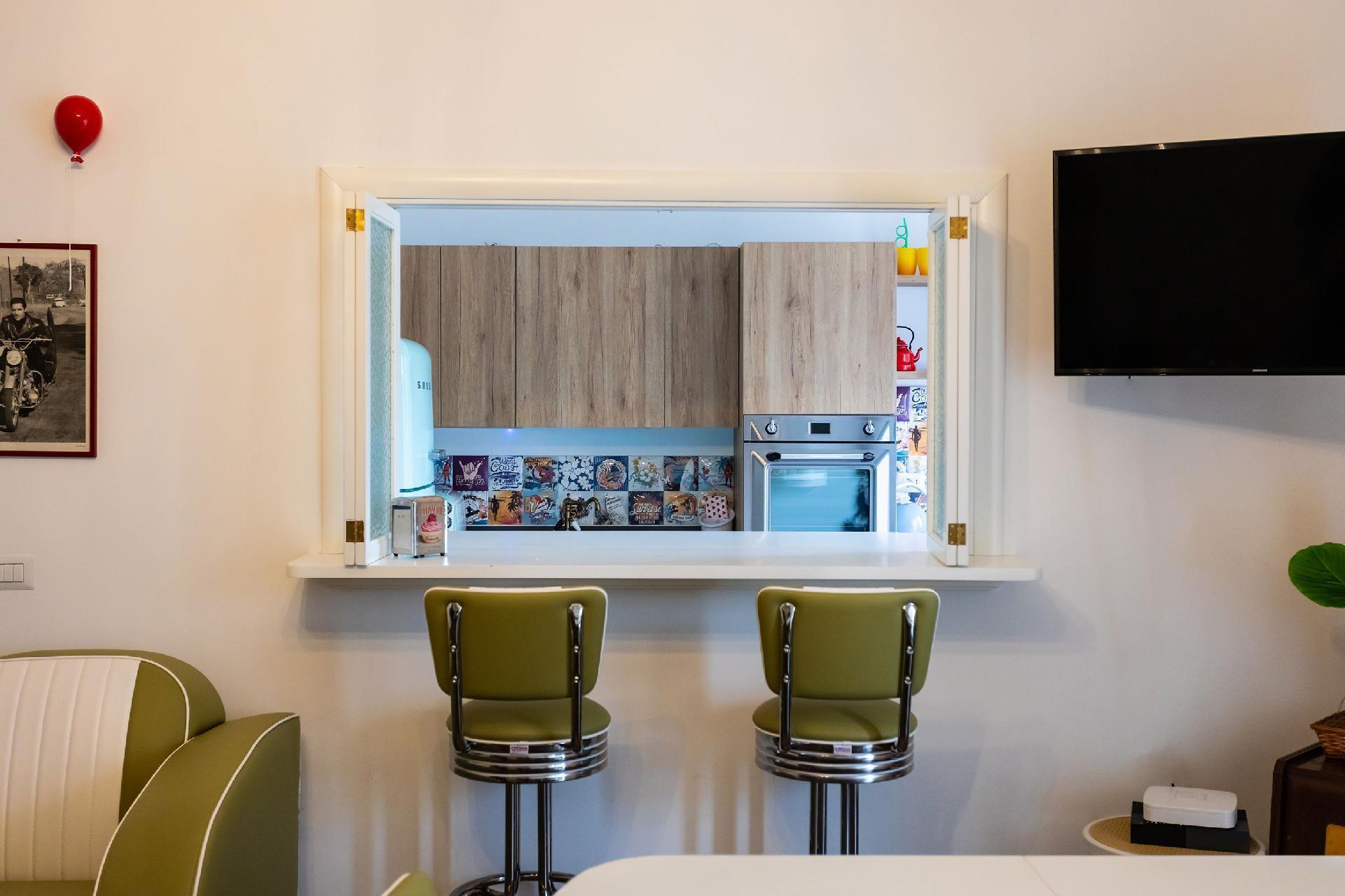 Entdecken Sie den Retro-Charme des Amerikas der 1950er Jahre in dieser sorgfältig eingerichteten Wohnung, in der Komfort auf den lebhaften, farbenfrohen Stil dieser Ära trifft. Dieses architektonische Juwel liegt in einer ruhigen Seitenstraße und befindet sich im ersten Stock, der mit dem Aufzug leicht zu erreichen ist. Es ist der perfekte urbane Rückzugsort für alle, die dem Alltag entfliehen möchten, ohne auf Komfort und Eleganz verzichten zu müssen.