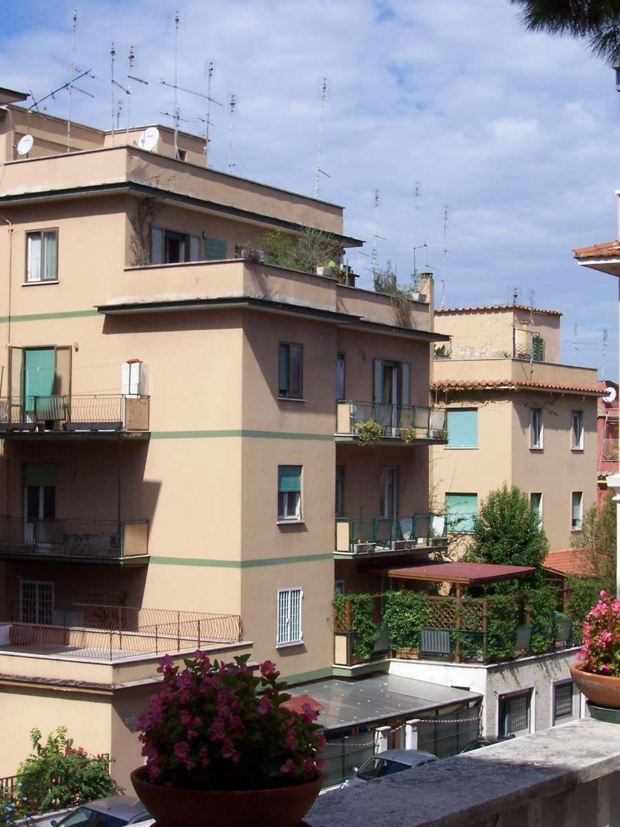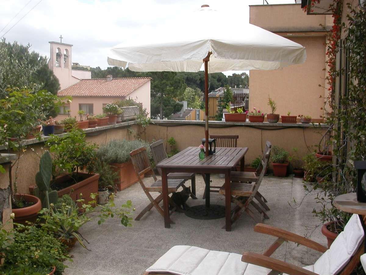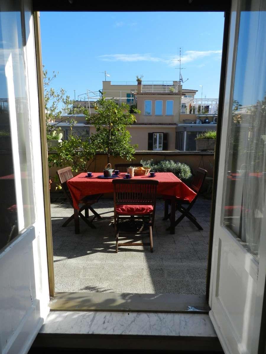 Die Ferienwohnung - ein Attico mit großer Dachterrasse - liegt in sehr guter und relativ ruhiger Wohnlage mit überwältigendem Blick auf die Hauptkirche Roms, San Pietro.