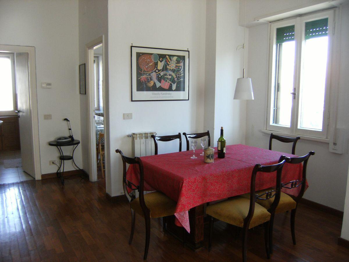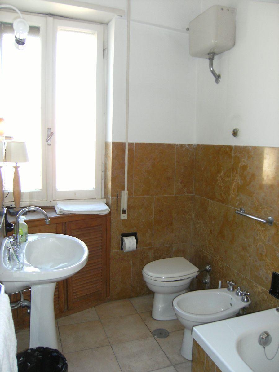 Die ruhige und lichtdurchflutete Wohnung (ca. 75 qm) mit Fenstern auf 3 Seiten liegt im 4. Stock (seit 2011 ist ein neuer Aufzug vorhanden!) eines kleineren Mehrfamilienhauses und ist ansprechend ausgestattet: großer Wohn-Eßraum mit Ausgang auf Terrasse, gr. Sat.-TV, dvd-Player, Deckenventilator, neue Doppelschlafcouch, eine weitere 3-sitzige Couch und 2 Sesseln, großes Schlafzimmer mit Deckenventilator, Küche (***) mit Spül- und Waschmaschine, Blick auf S. Pietro und Ausgang auf Terrasse, Bad (mit Wanne, Haarfön). Die Ausstattung ist gut und sehr gepflegt, schöne Parkettböden, ZH (Gas).
