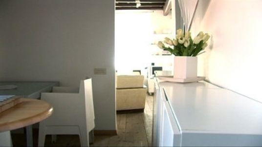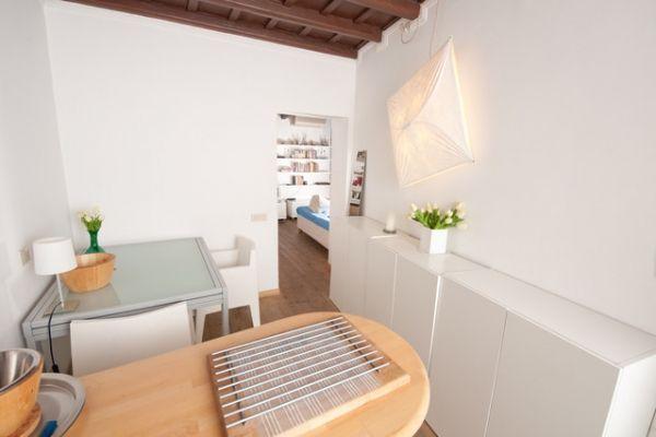 Obwohl sich die Wohnung in einem Gebäude befindet, kann man die magische Atmosphäre Roms durch die Fenster bewundern, die eine bezaubernde Aussicht und die Möglichkeit bieten, den Geist der Stadt vom Morgengrauen bis zur Abenddämmerung in sich aufzunehmen.